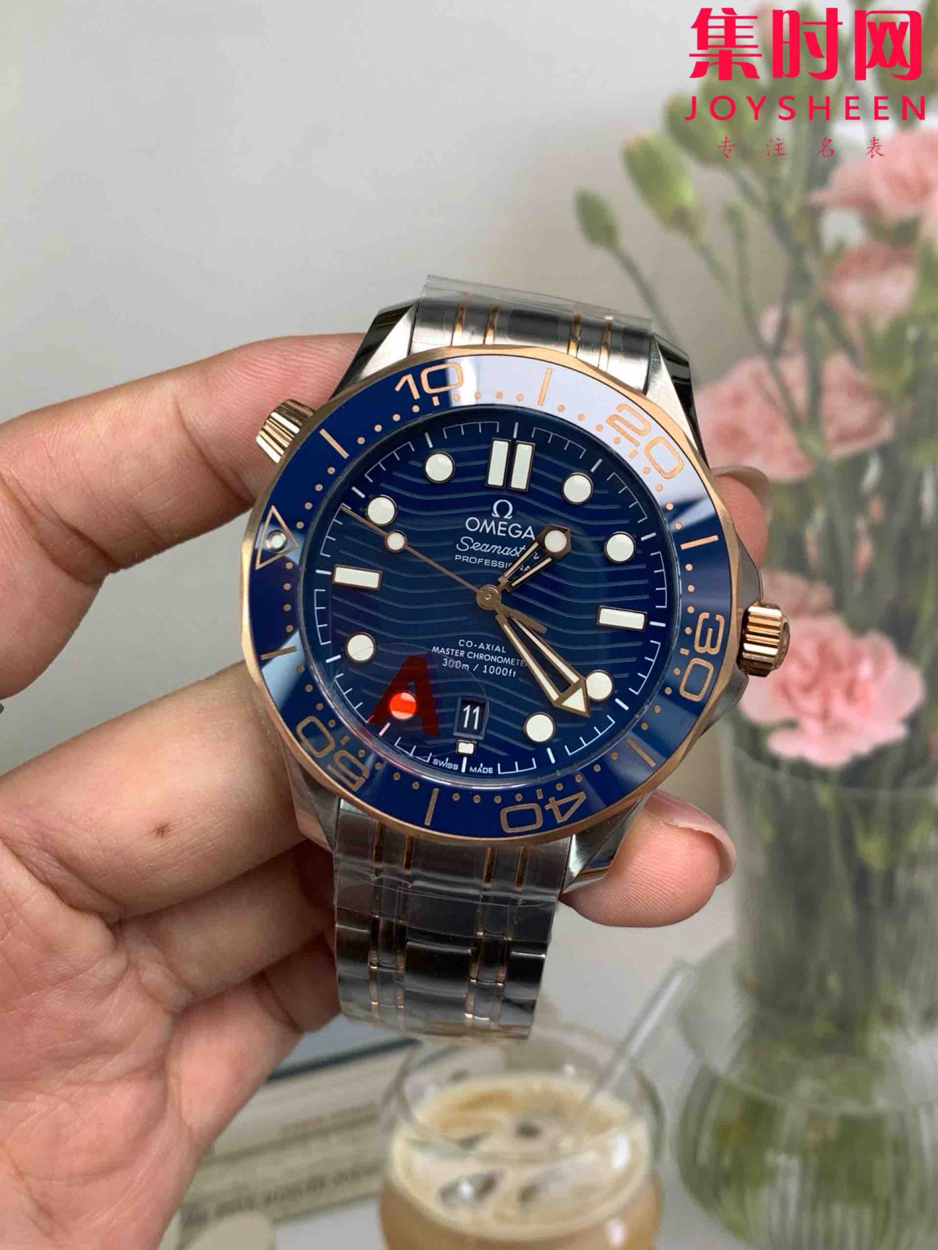 欧米茄VS海马300米系列V4版 8800一体机 VS海马v4版 原装开模 间玫金蓝海马 男士腕表