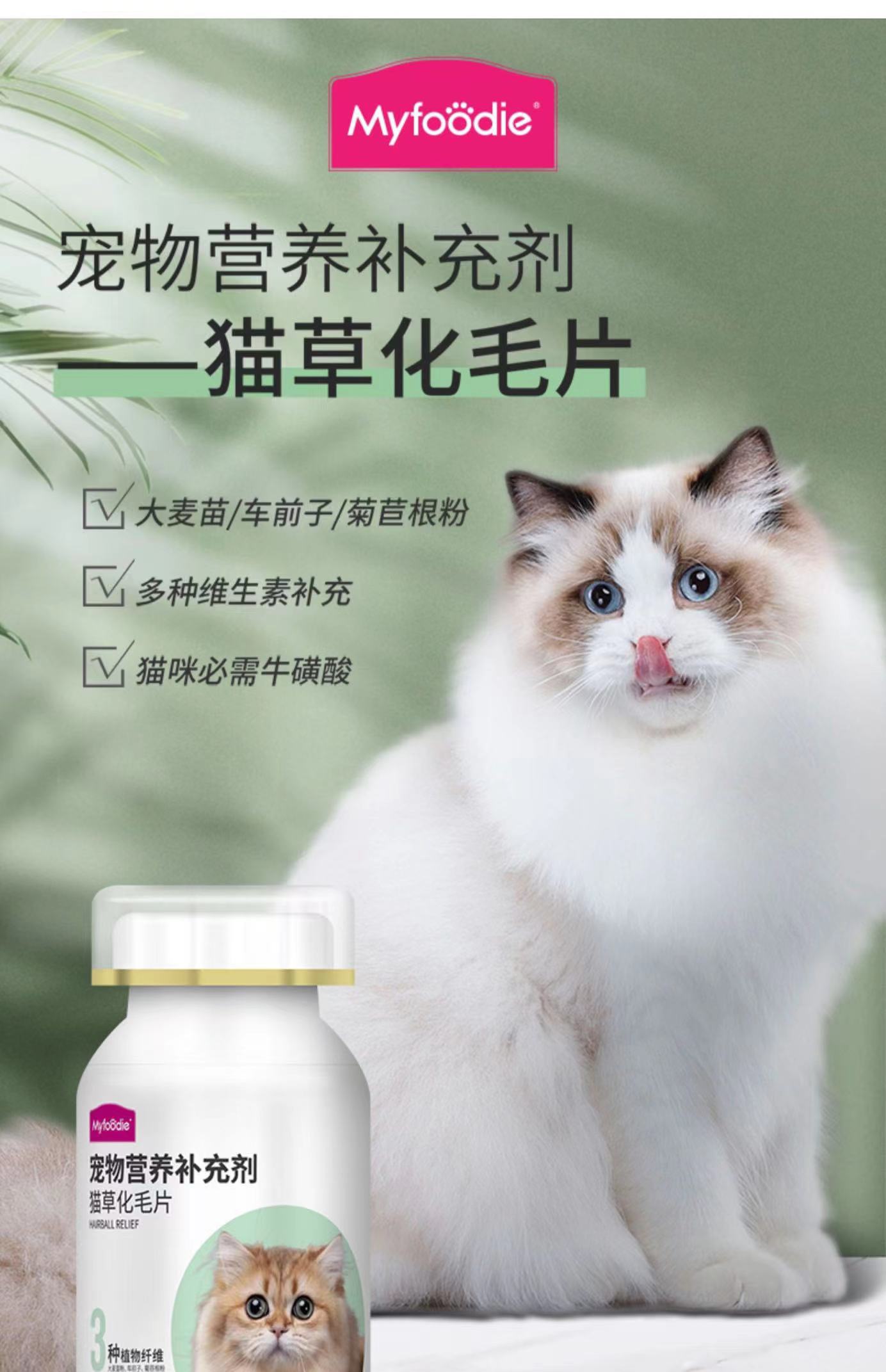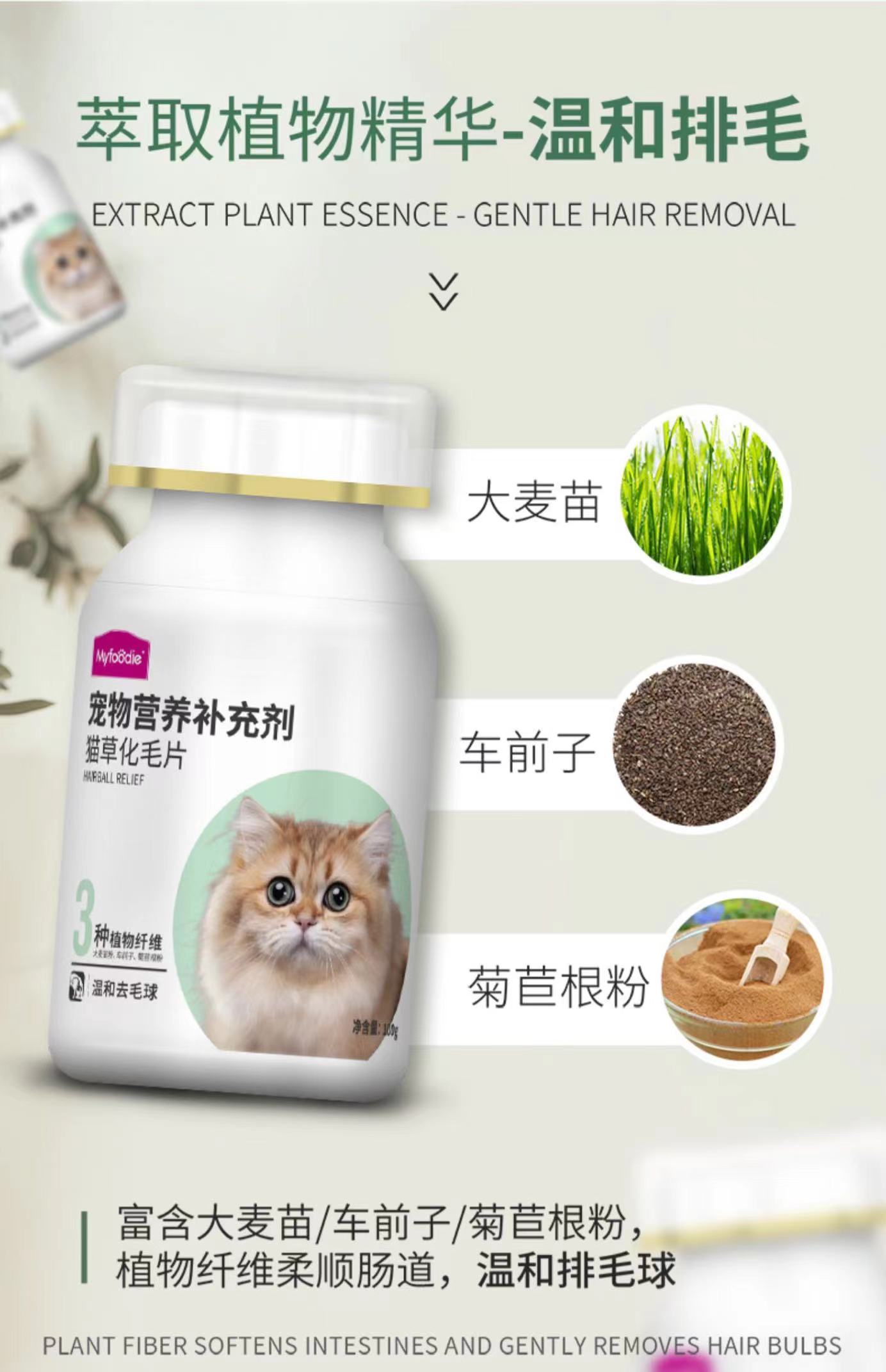 麦富迪猫草化毛片成幼猫咪去毛吐毛促排毛球补充维生素化毛膏100g