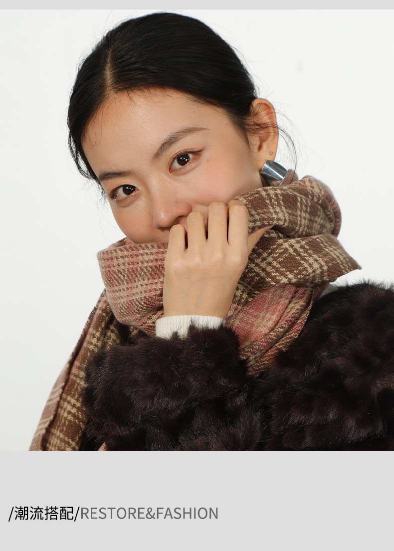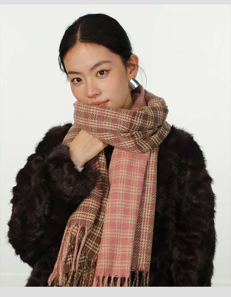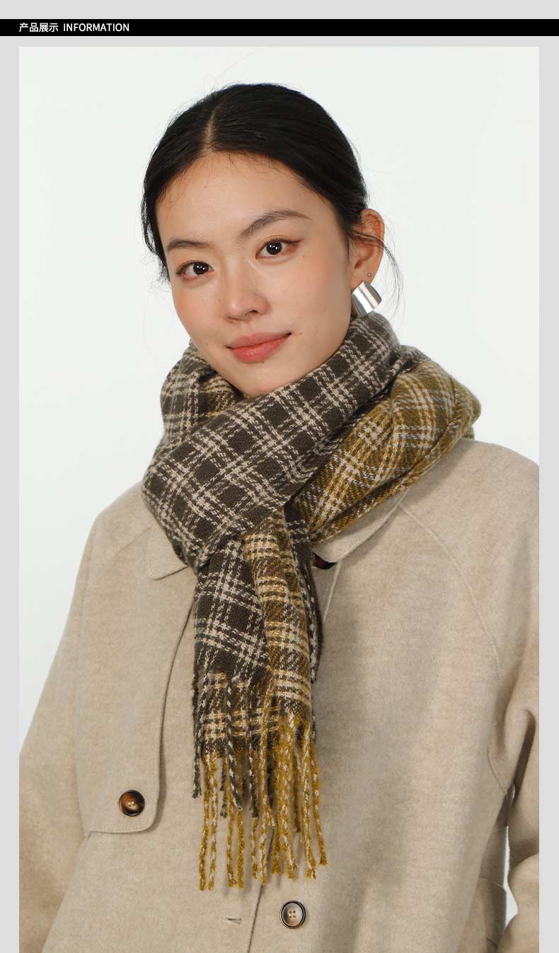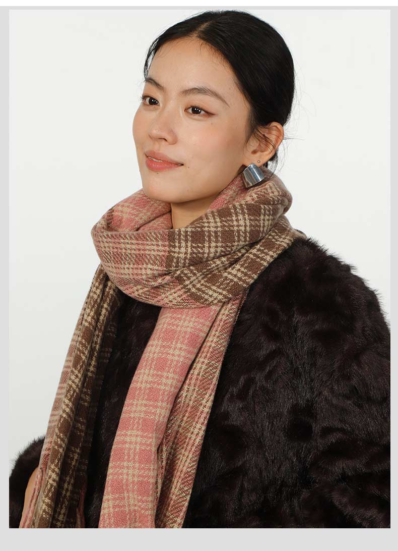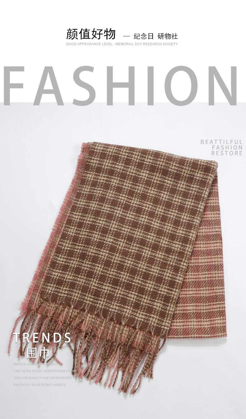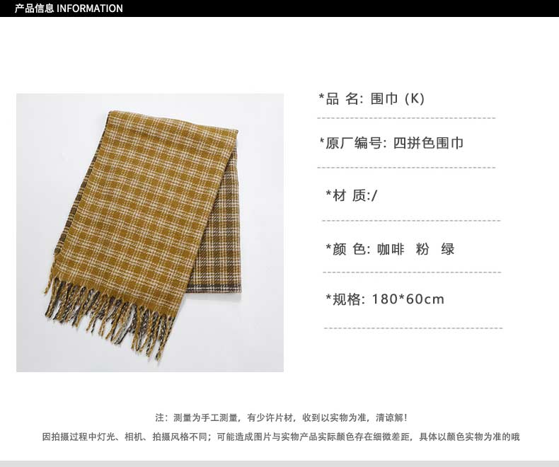 四拼色格氛围百搭软糯流苏围巾-纪念日百货门店同款166550117