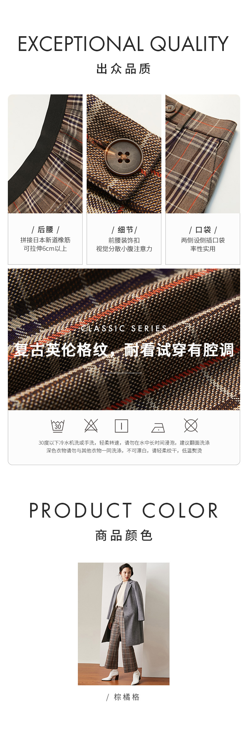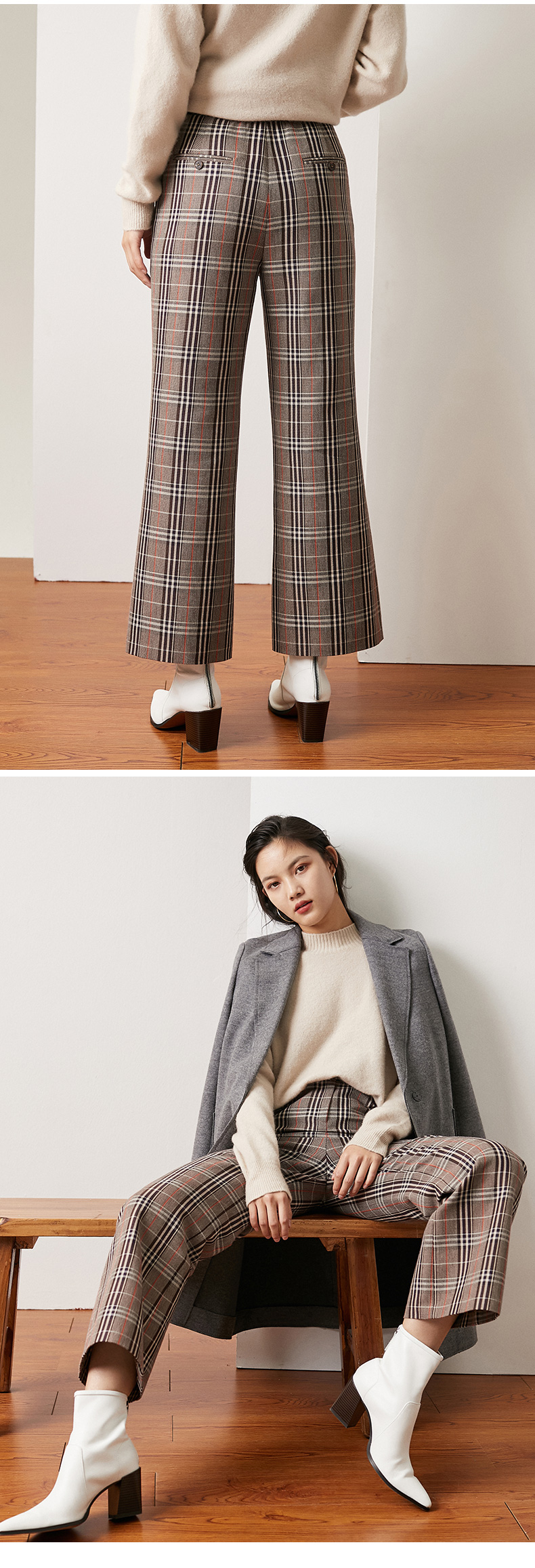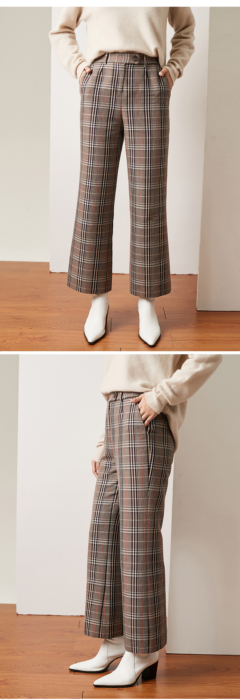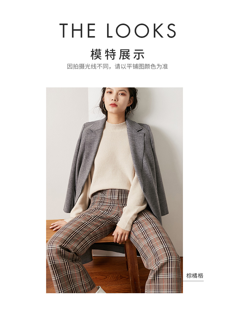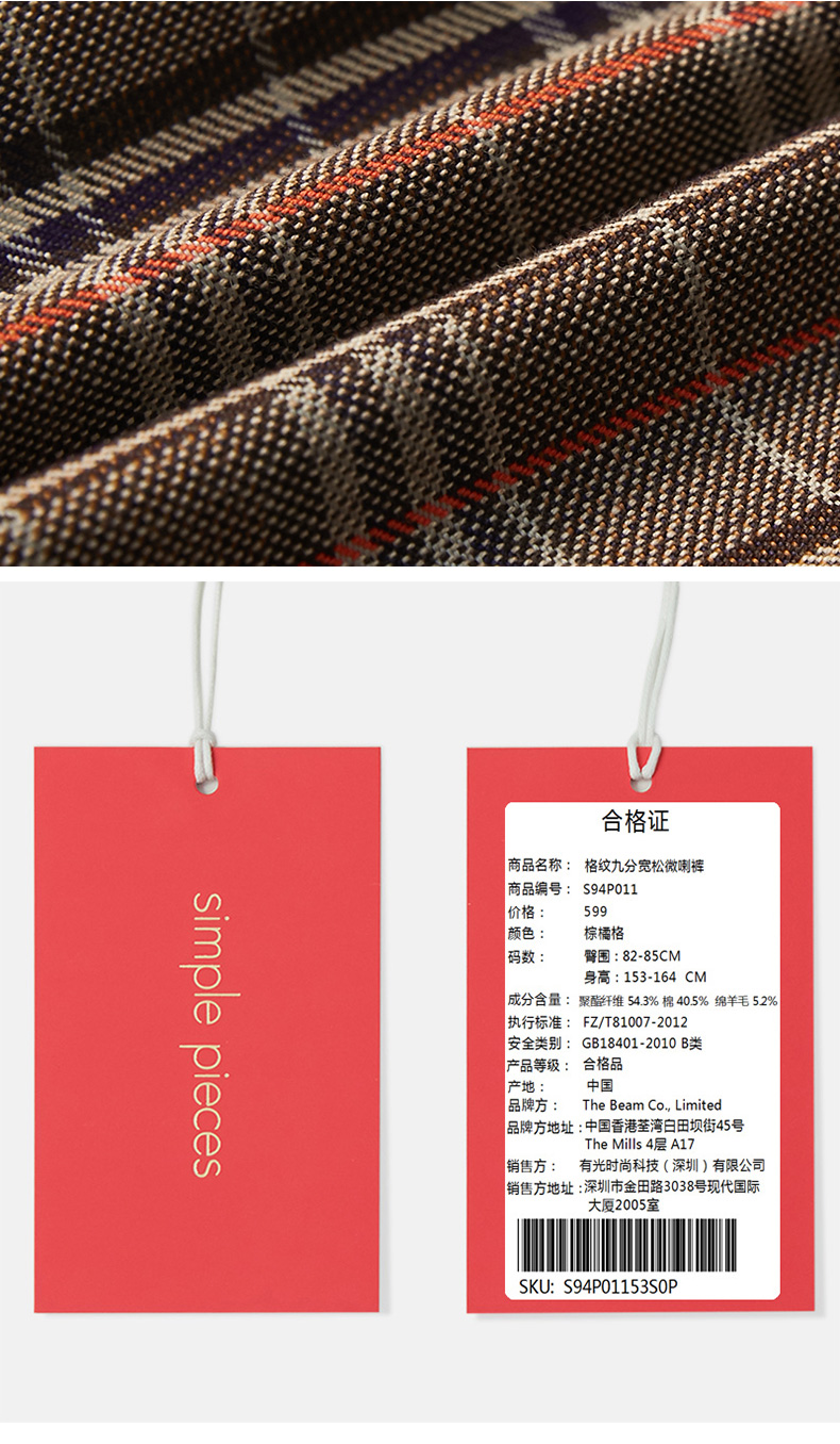 simplepieces休闲裤格纹九分宽松微喇裤S94P011