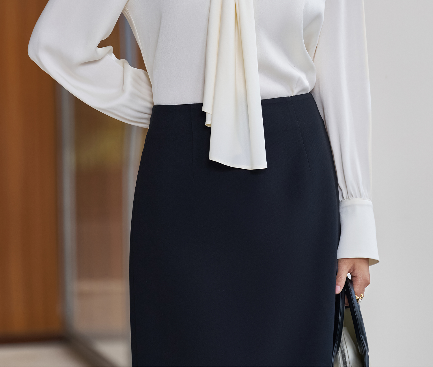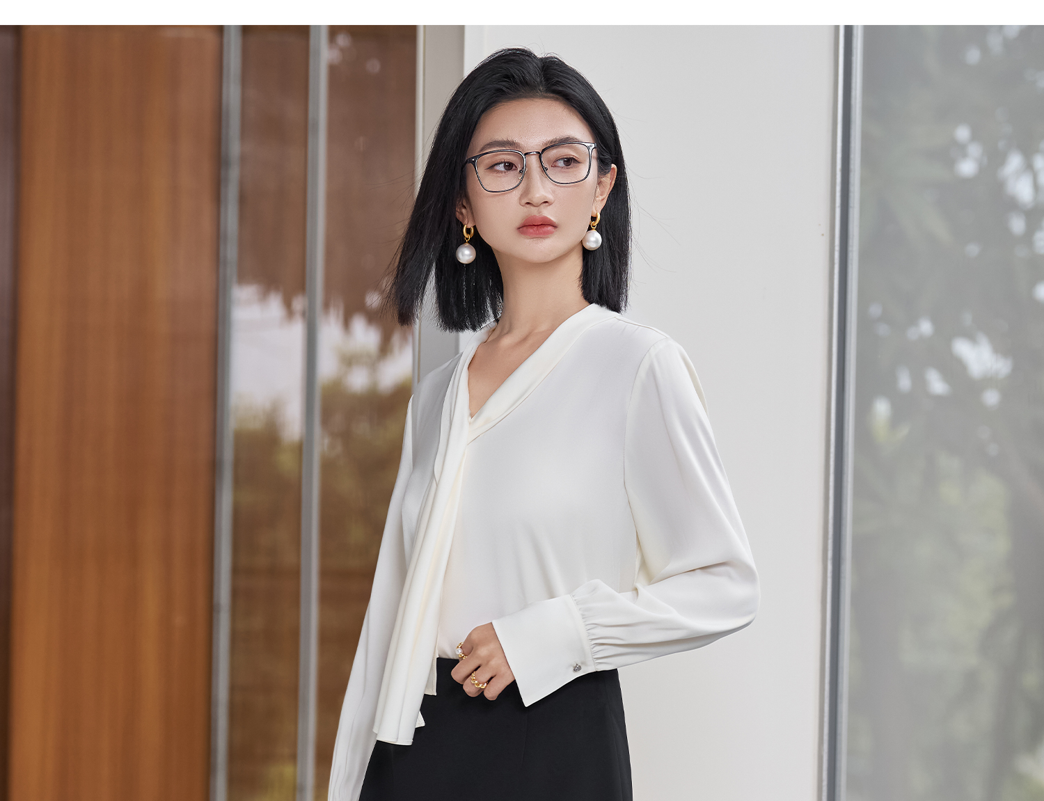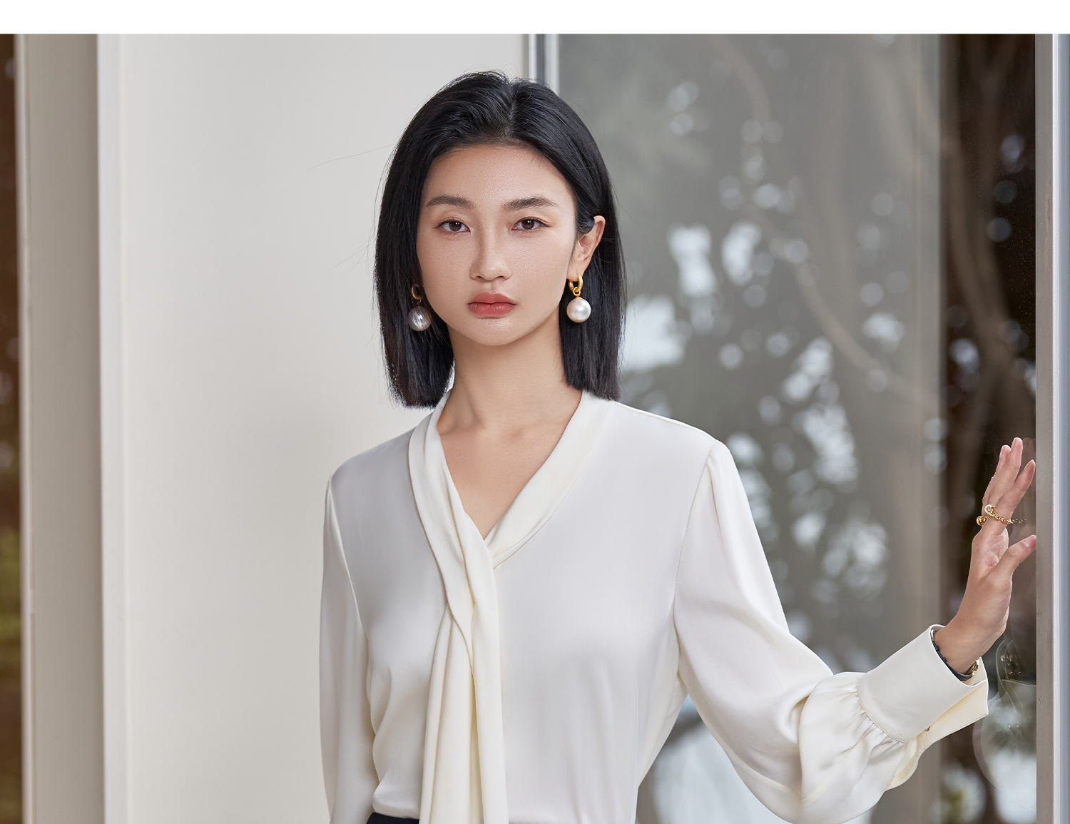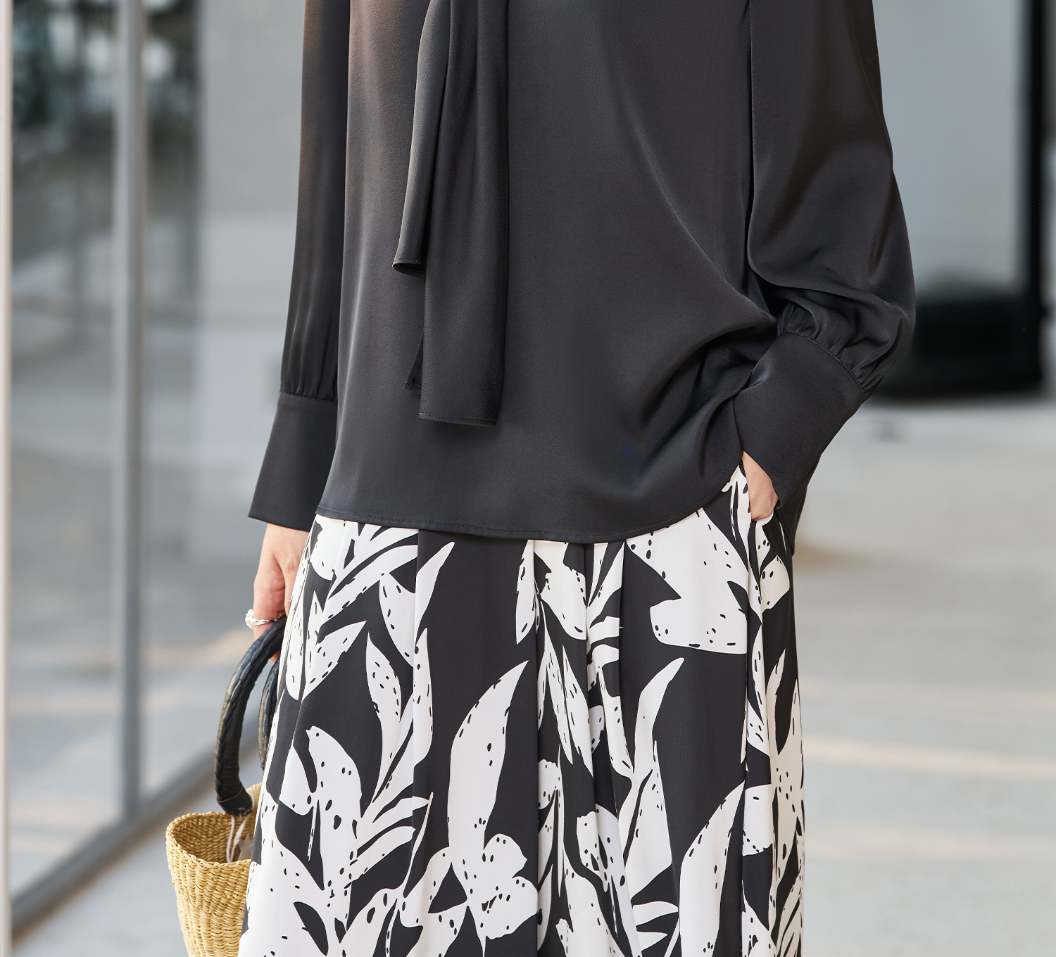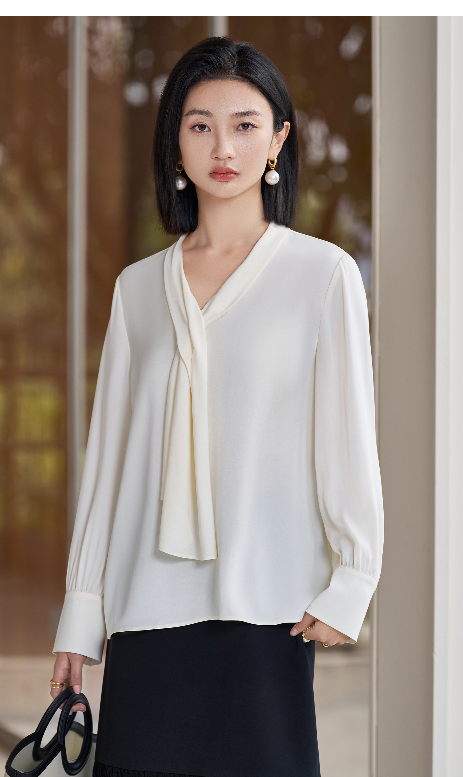 剩S 醋酸缎面垂感衬衫 米思阳2026春季新款轻奢高级感系带上衣女5992