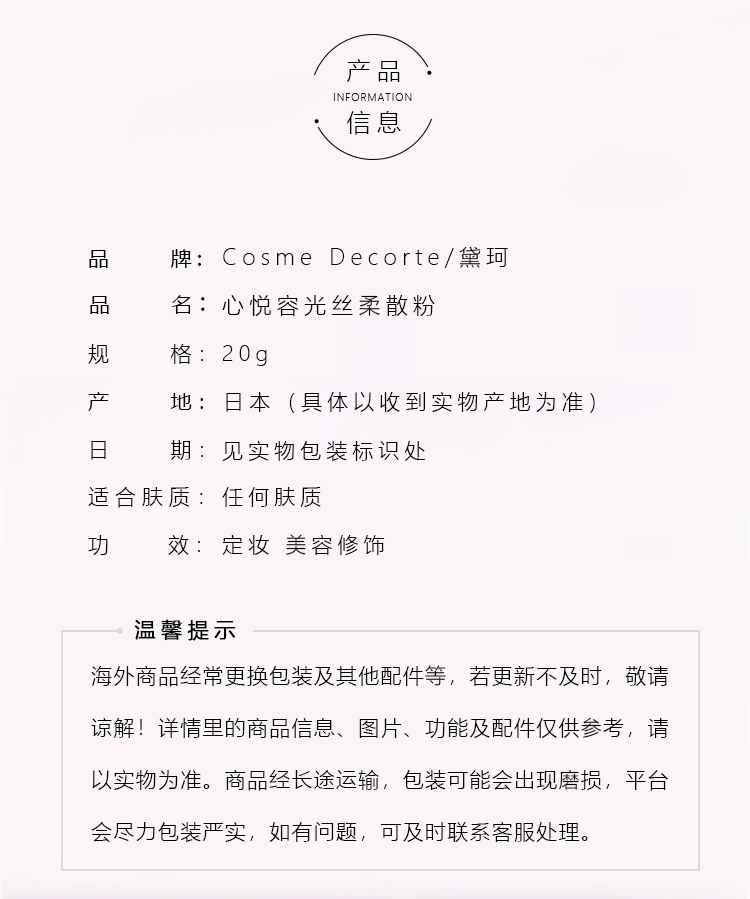 黛珂散粉心悦容光丝柔新版 控油定妆透亮丝柔蜜粉 (CDF)