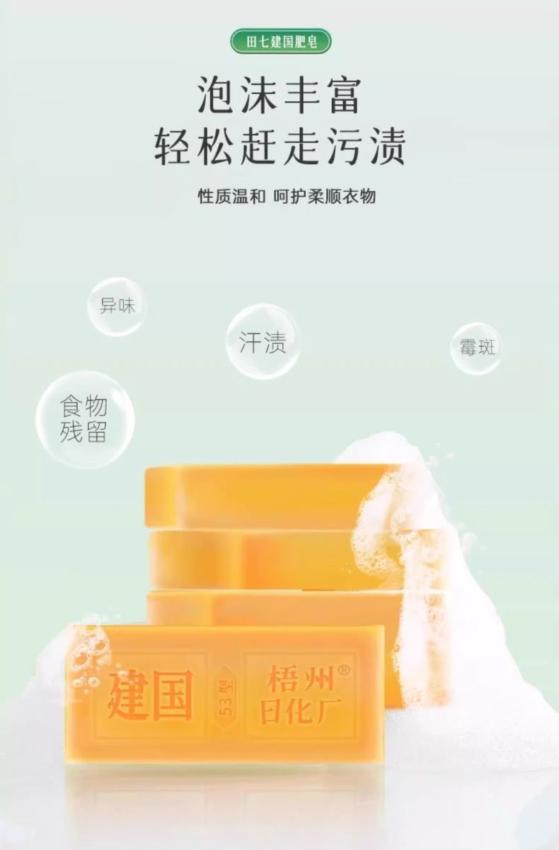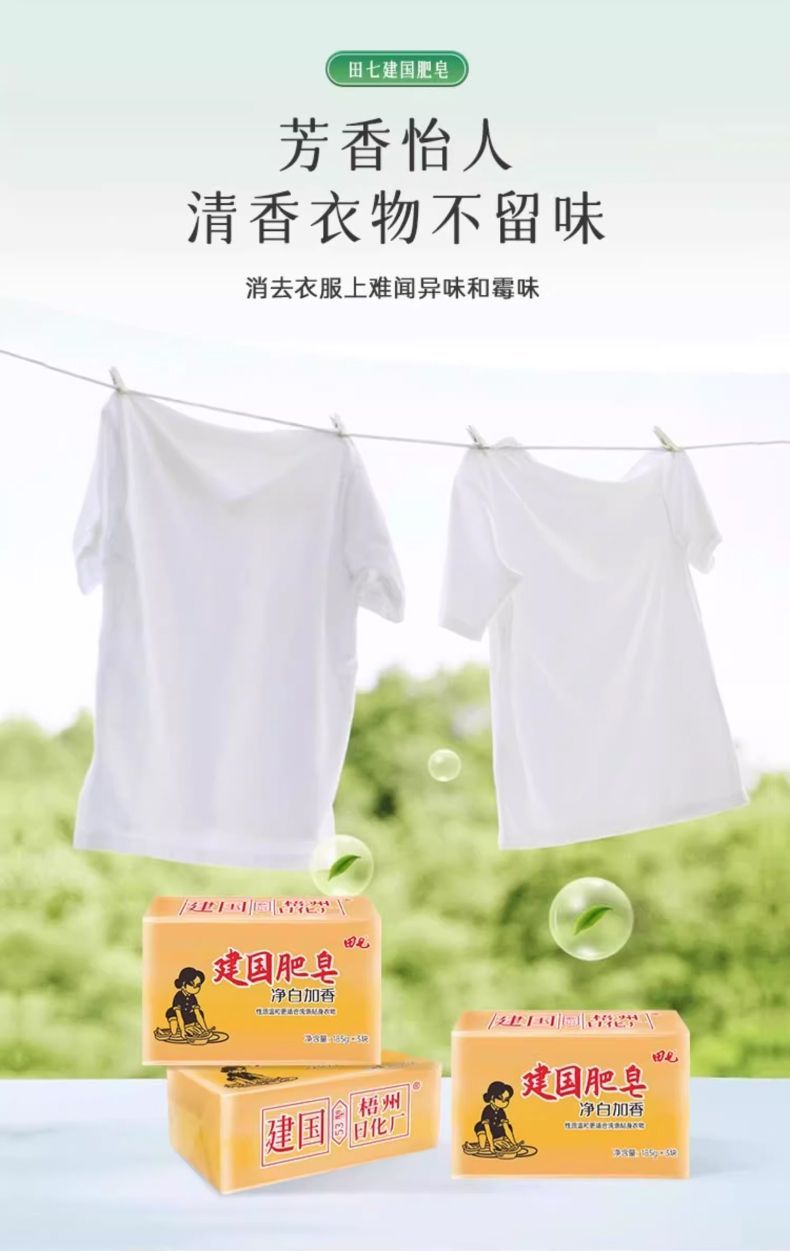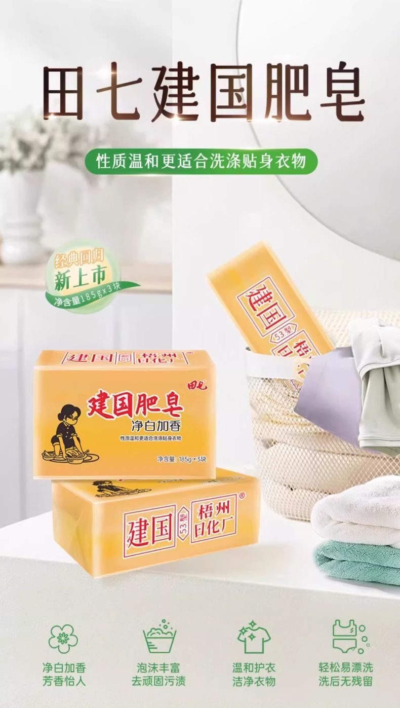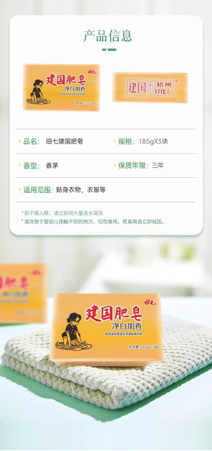 田七建国肥皂加香老牌子内裤洗衣皂净内衣温和污渍净白实惠185g*3