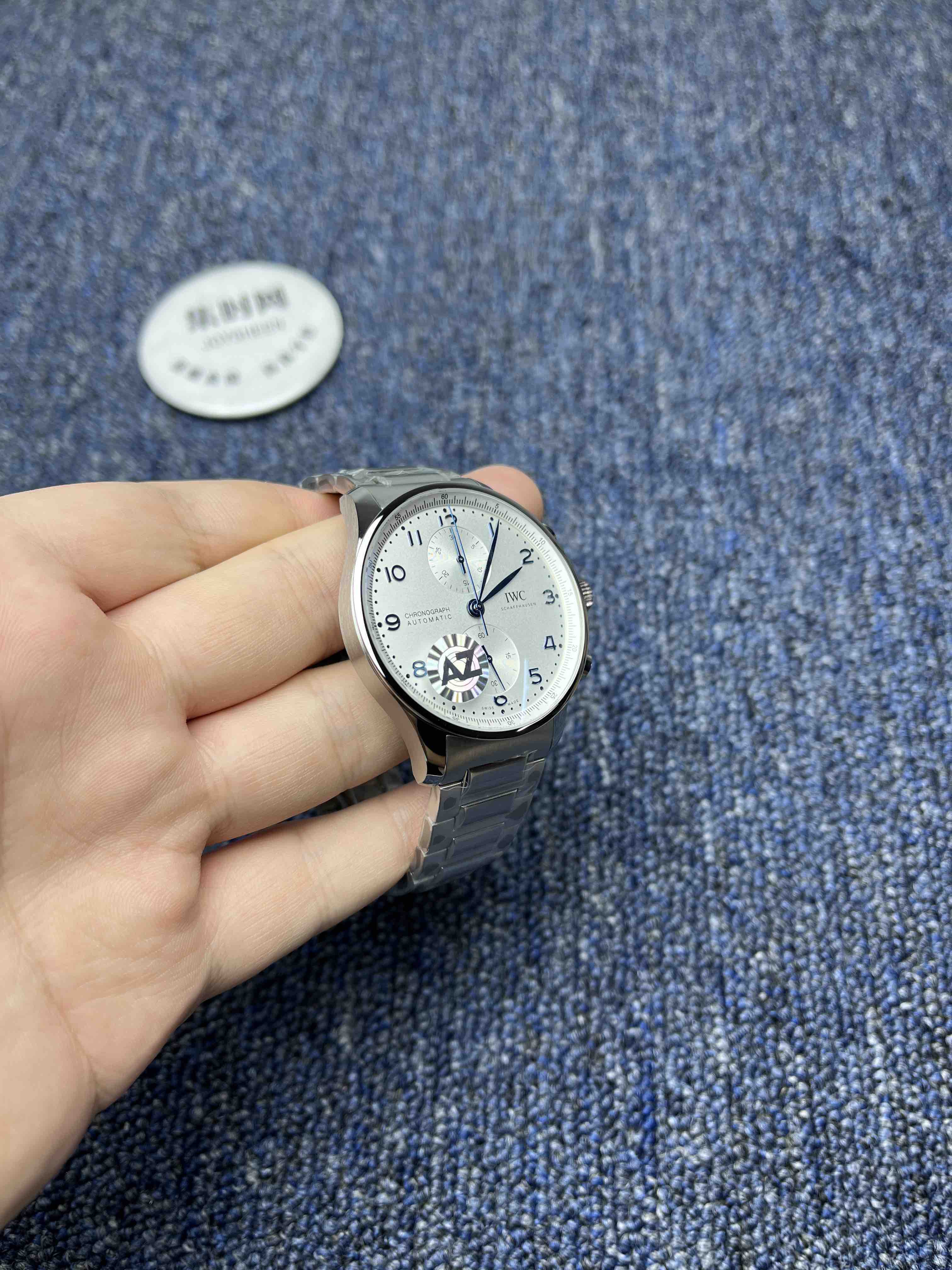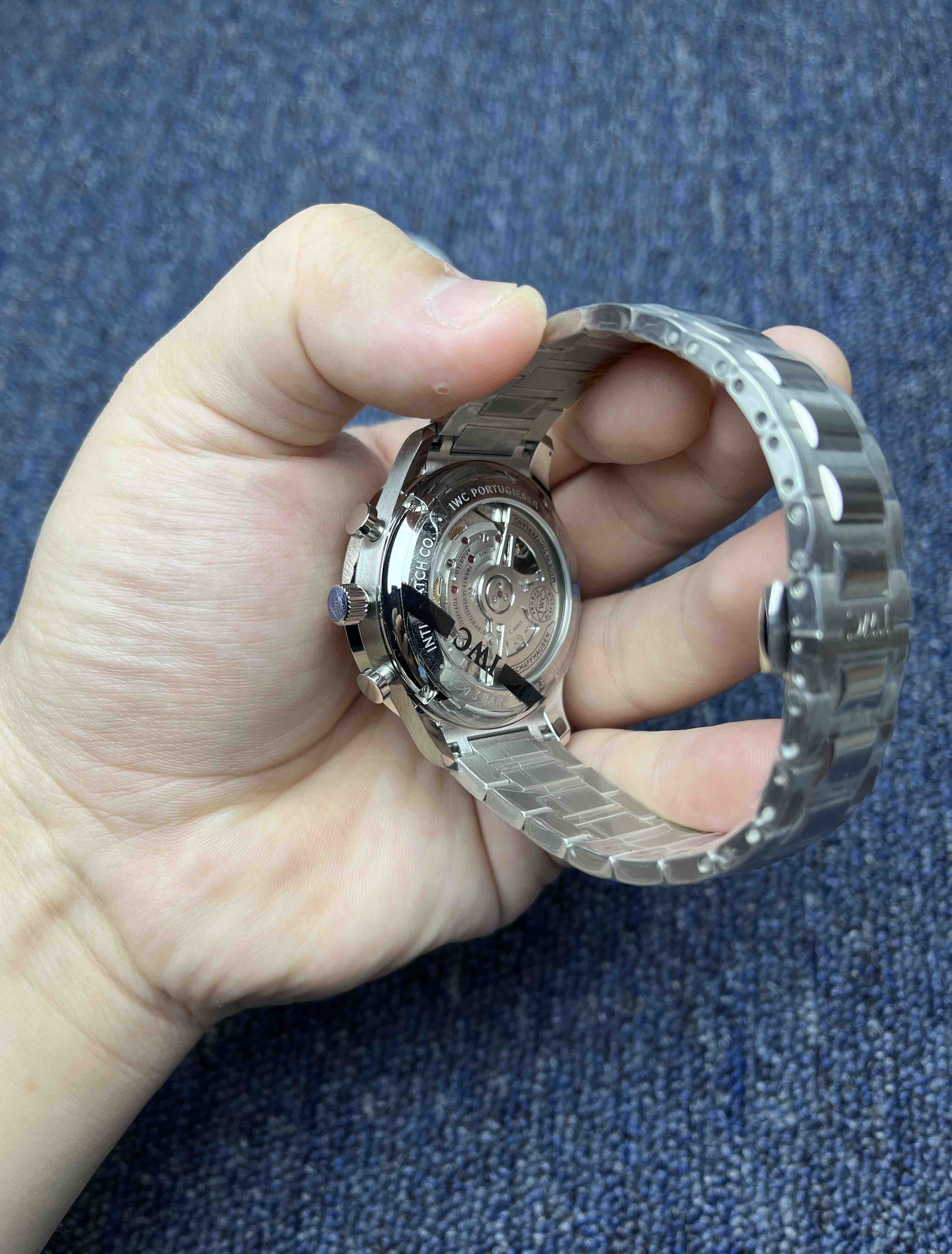 扛鼎新作一IWC万国表 AZ葡萄牙系列计时腕表 透底葡计钢带款 男士腕表 白盘蓝针