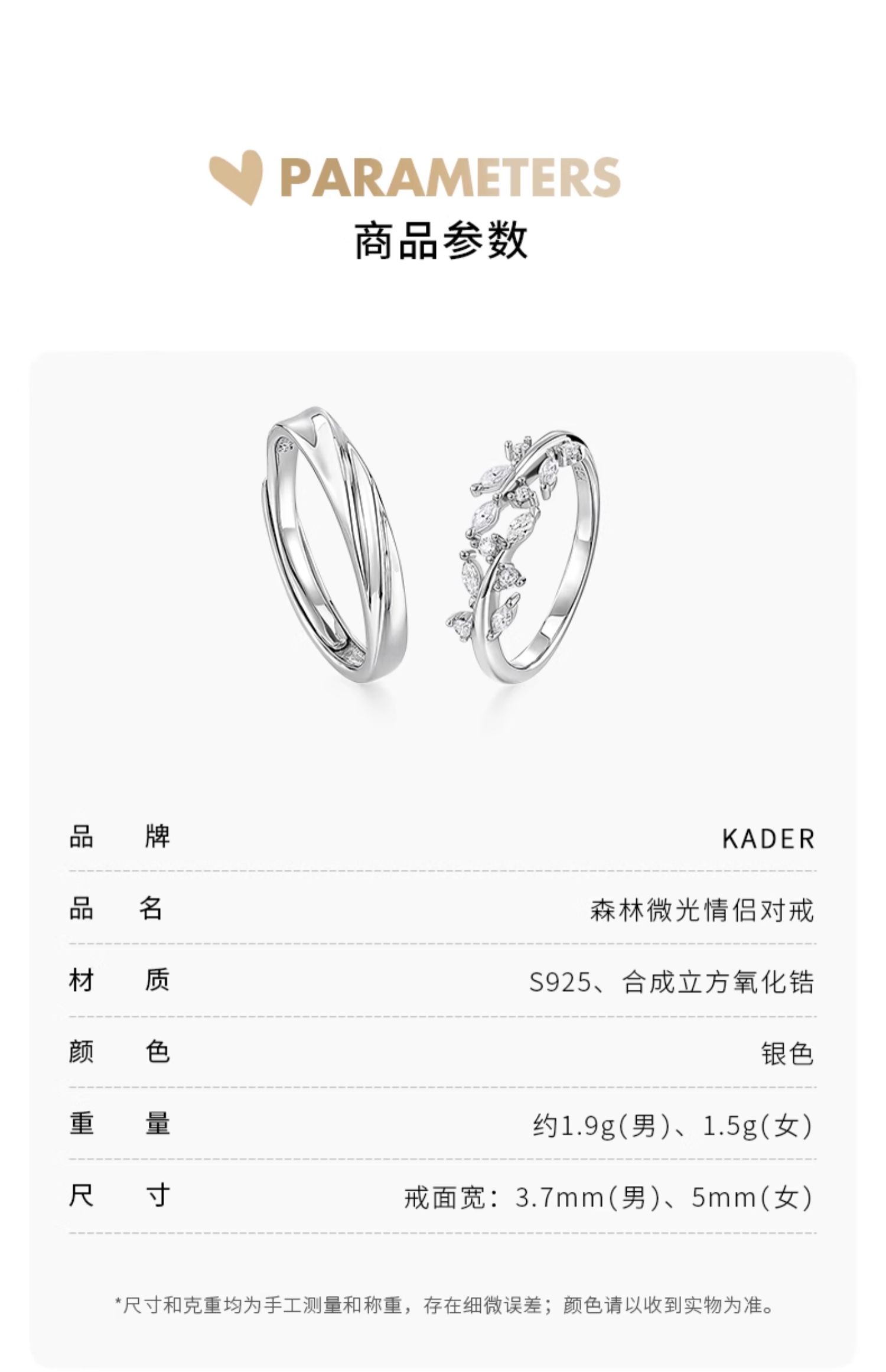 卡蒂罗森林微光情侣对戒925银戒指一对小众设计感礼物送男女友