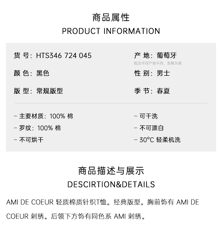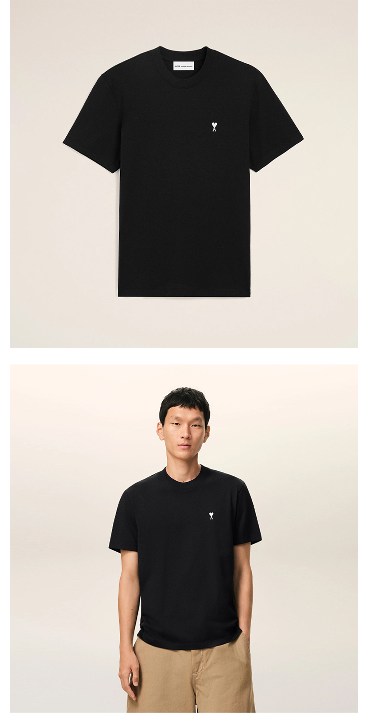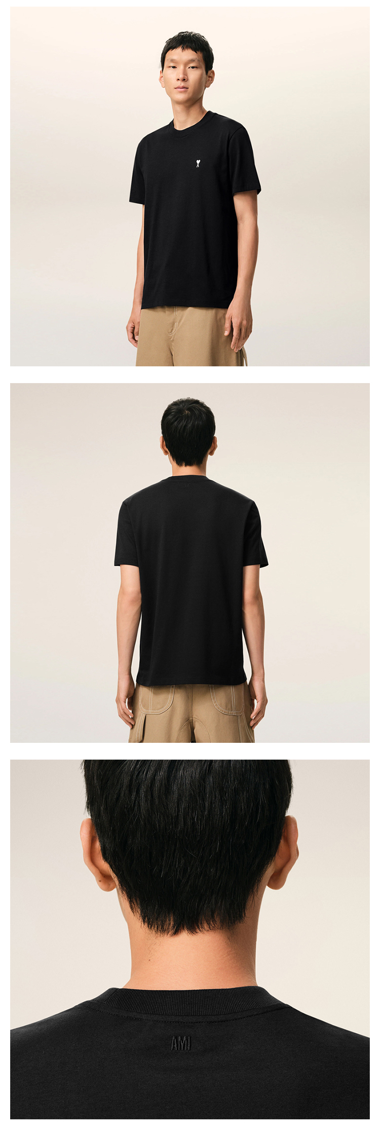 AMI PARIS 男士心形徽标刺绣棉质圆领短袖T恤 黑色 HTS346 724 045