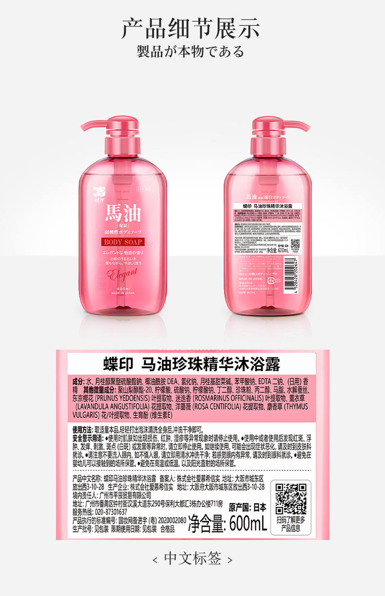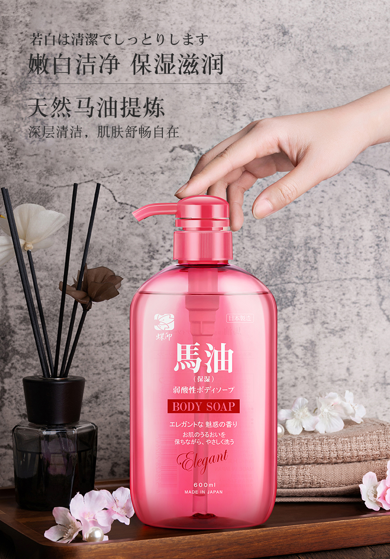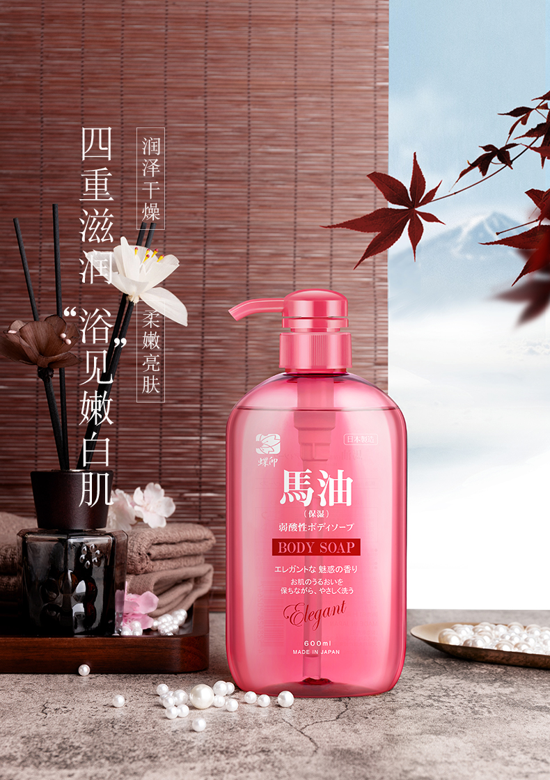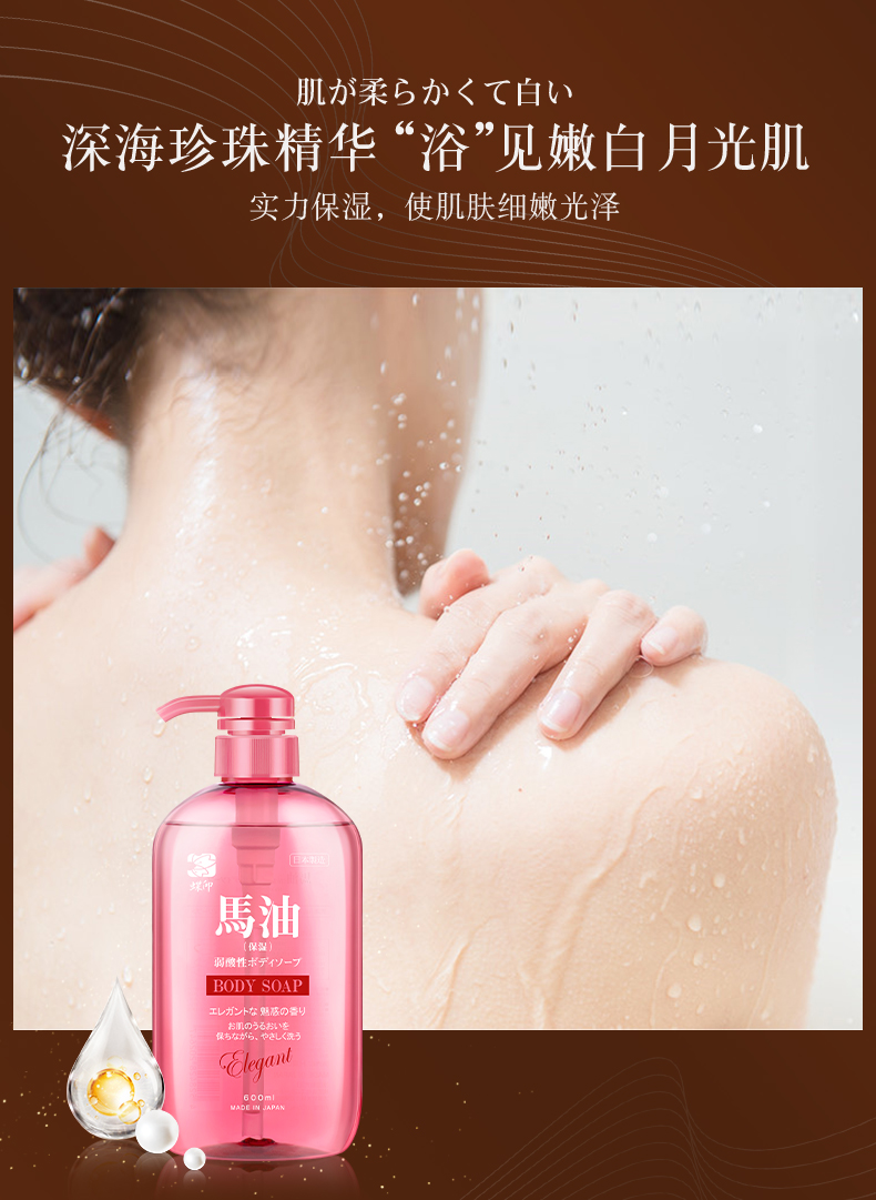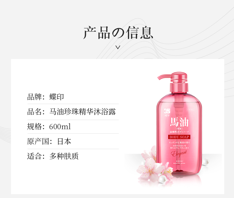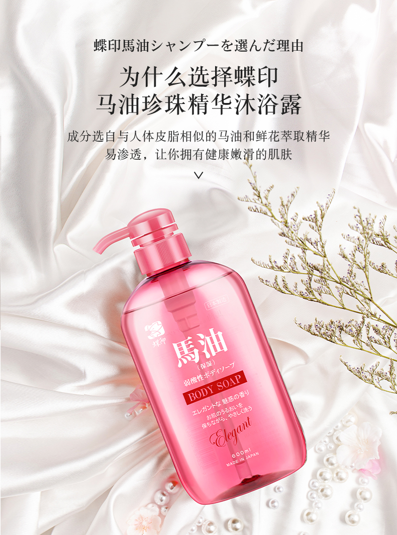 日本进口蝶印马油珍珠精华沐浴露600mL