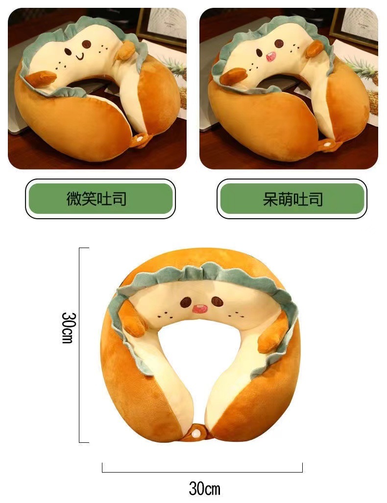 「一枕多用!360°呵护」可爱吐司面包U型颈枕护颈脖子汽车用旅行便携U形枕头颈椎靠枕女居家布艺