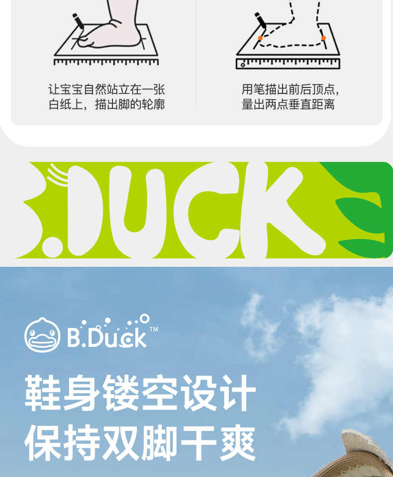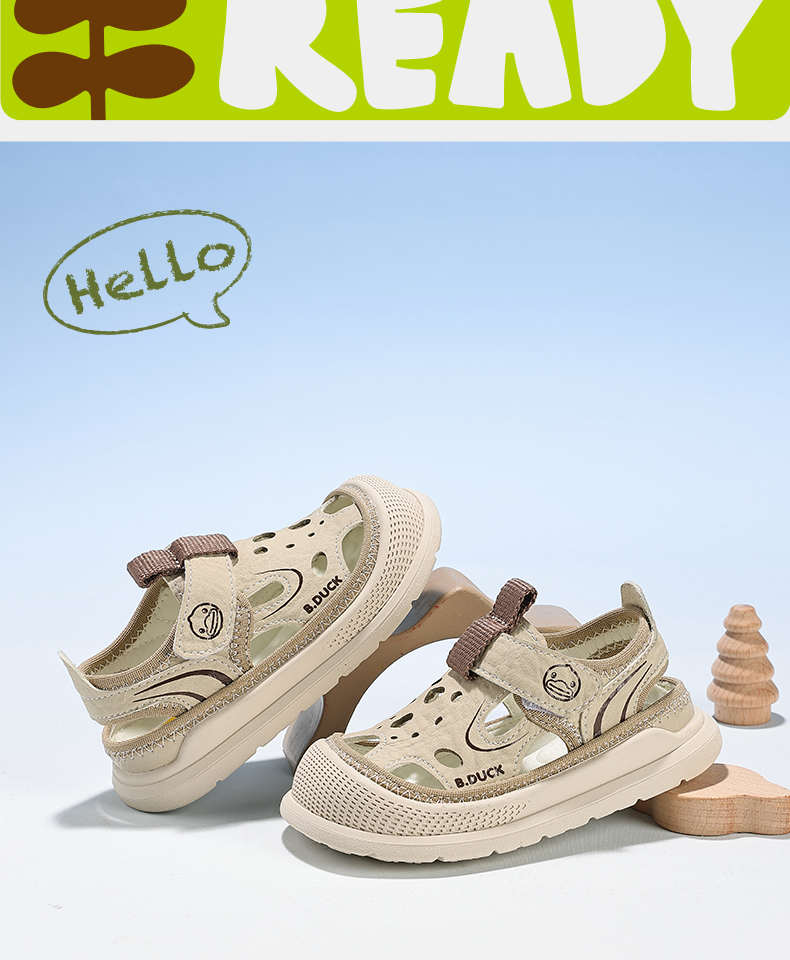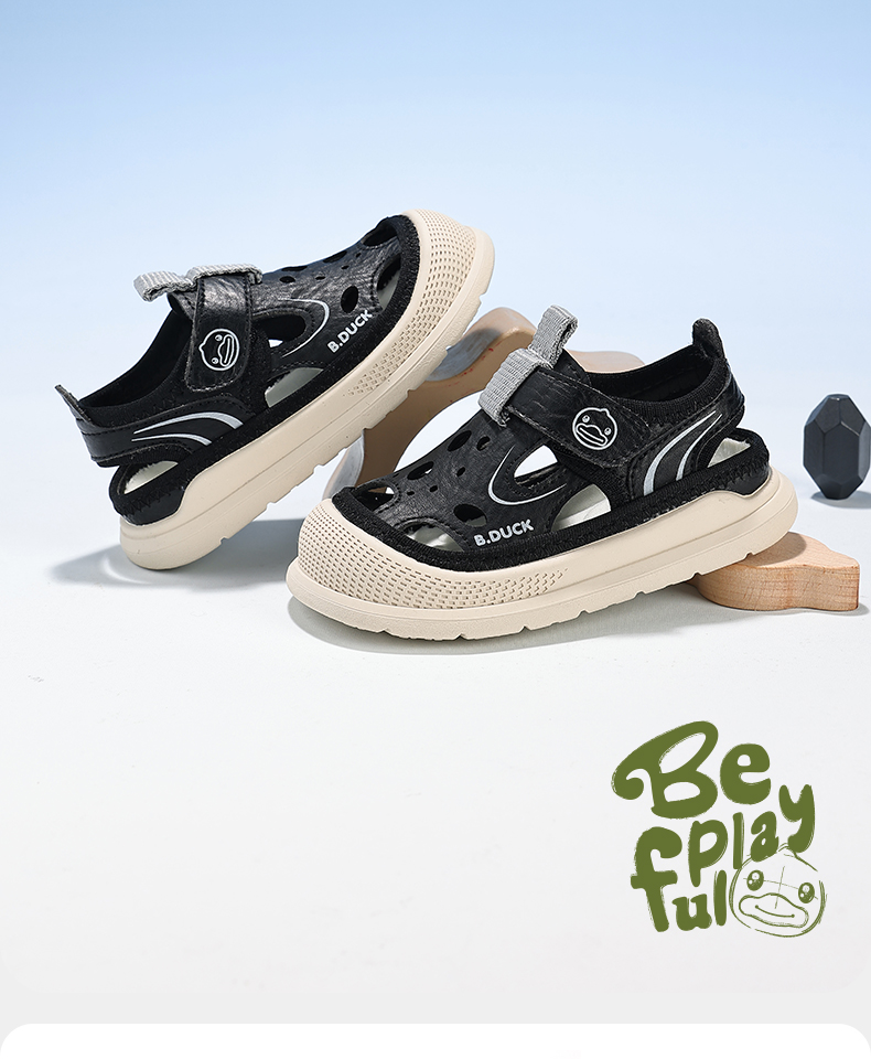 B.Duck小黄鸭童鞋男宝宝学步鞋夏季镂空透气网面儿童凉鞋22-26 B2686881