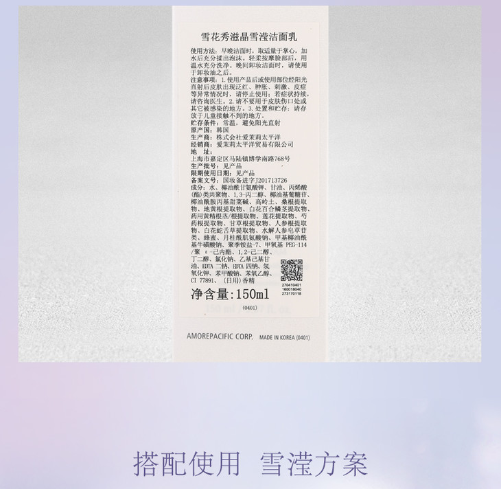 雪花秀 滋晶雪滢洁面乳150ml 泡沫洗面奶
