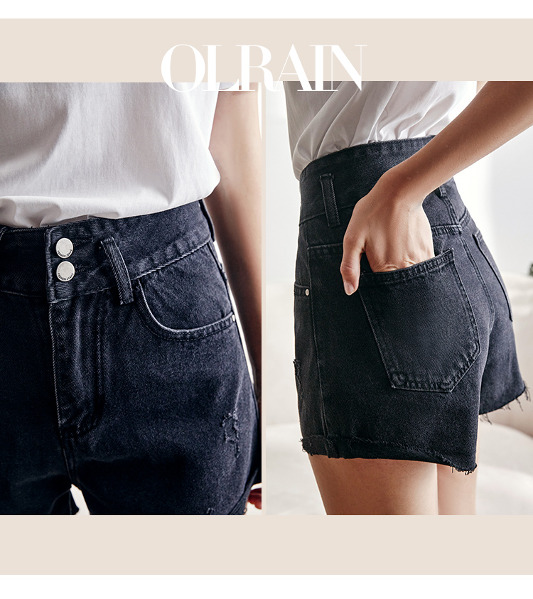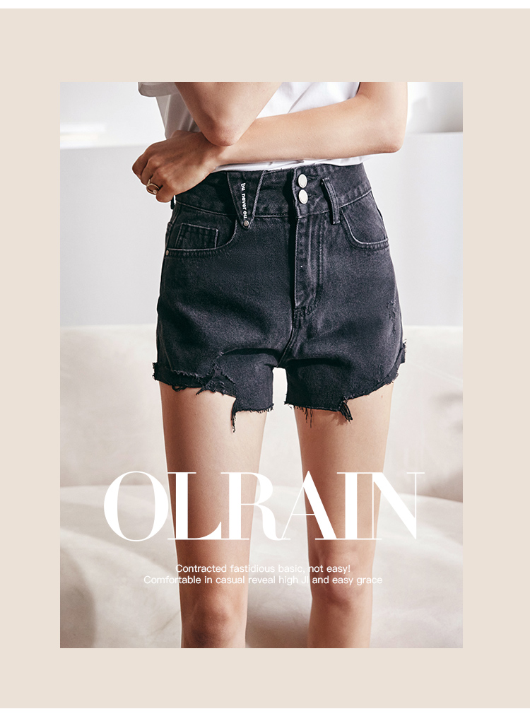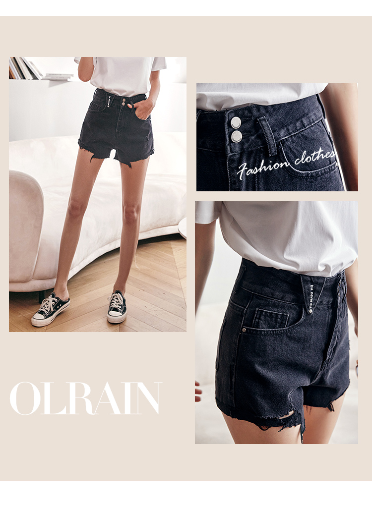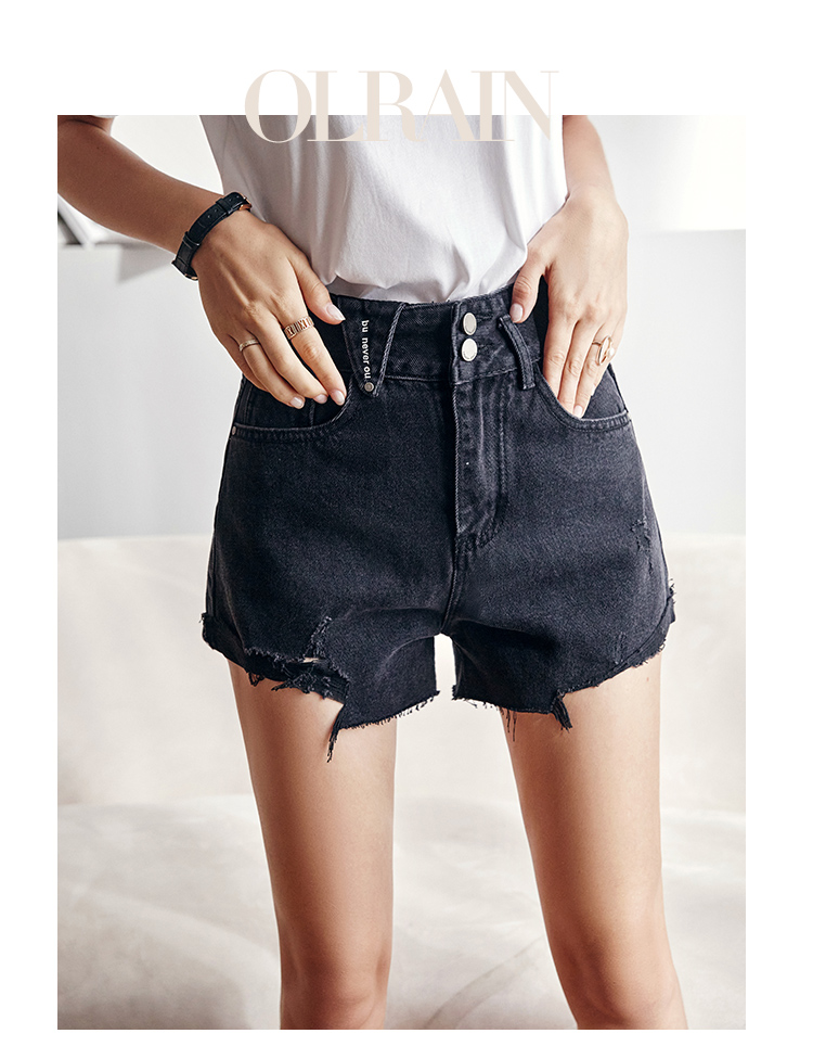 欧芮儿黑色牛仔裤女2021新款高腰显瘦时髦炸街散口边短款热裤