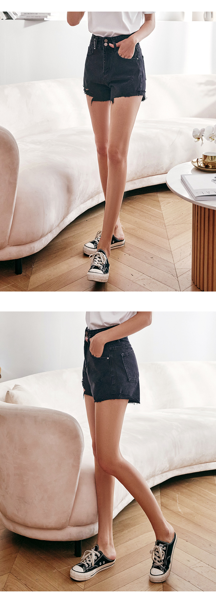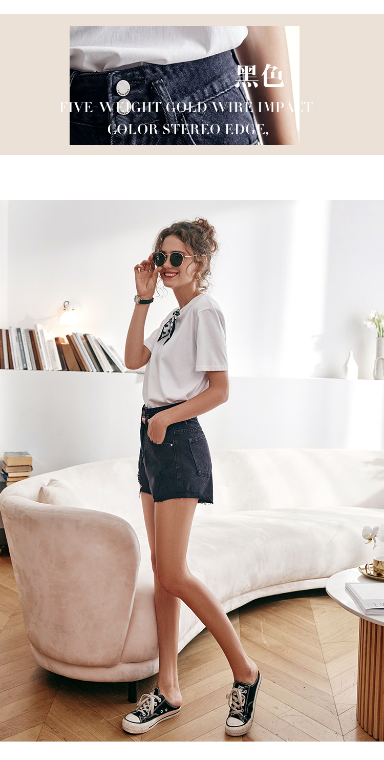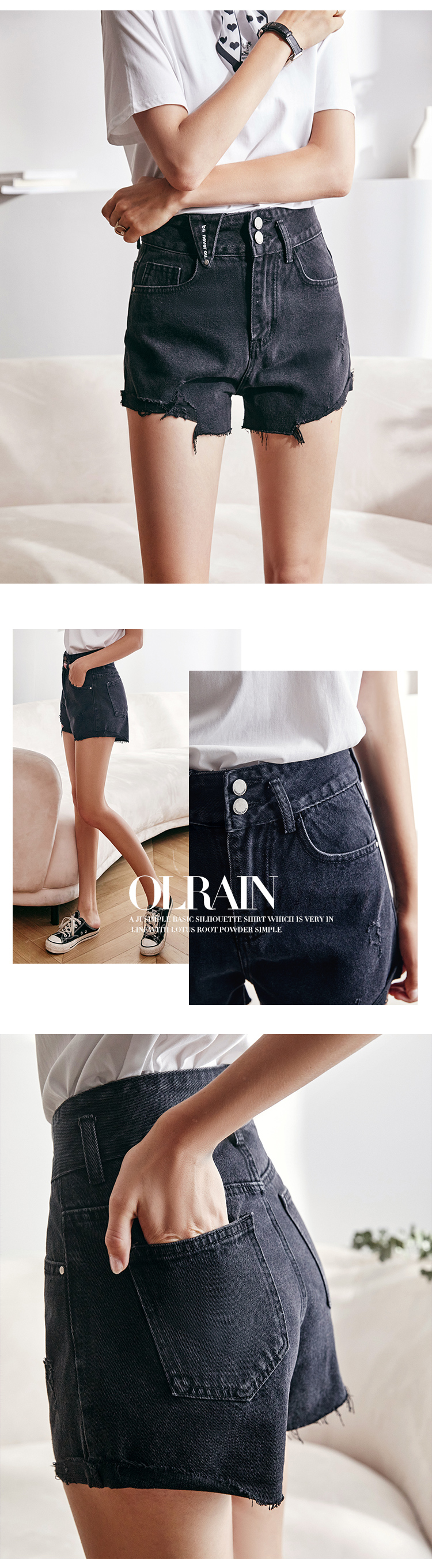 欧芮儿黑色牛仔裤女2021新款高腰显瘦时髦炸街散口边短款热裤