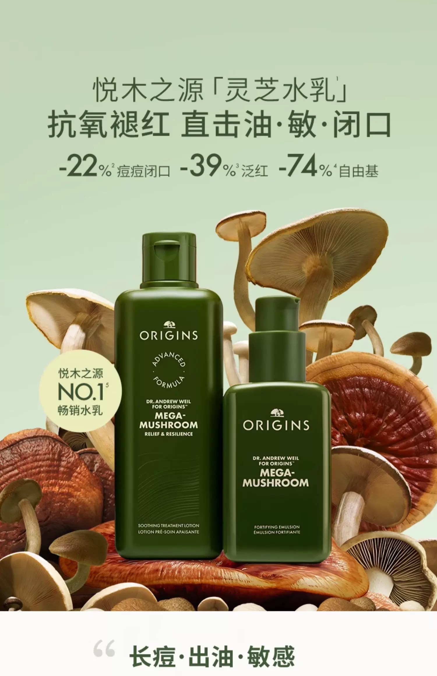 【王一博力荐】悦木之源菌菇水爽肤水200ml 菌菇乳液灵芝乳液强韧乳液100ml 灵芝水乳套装薄皮保湿修护强韧控油