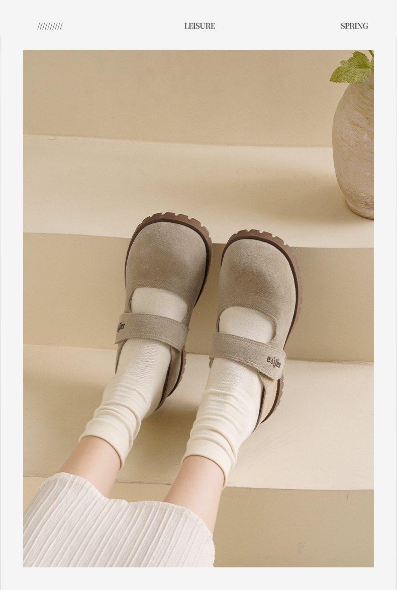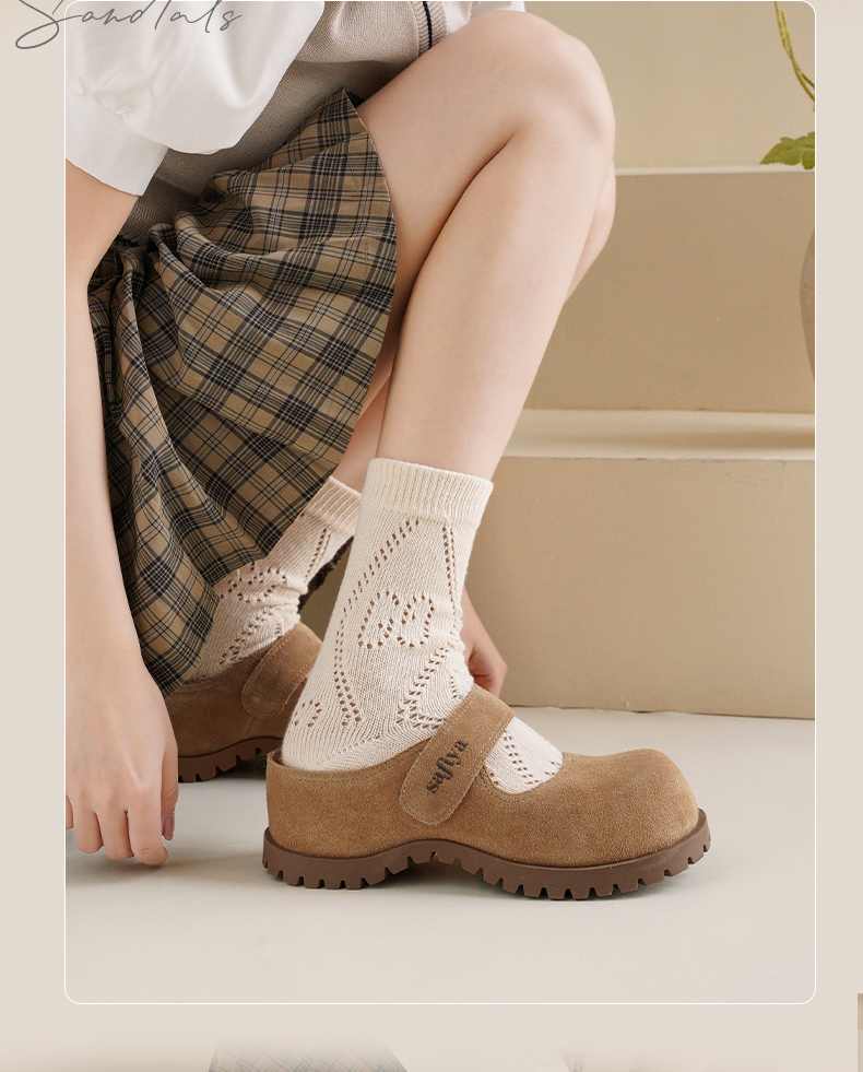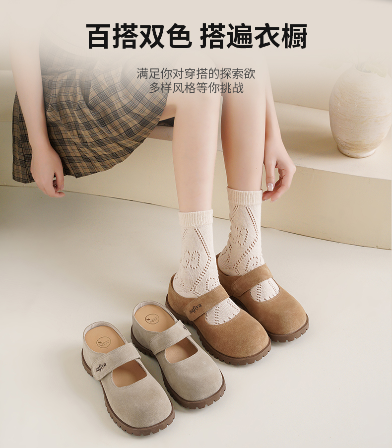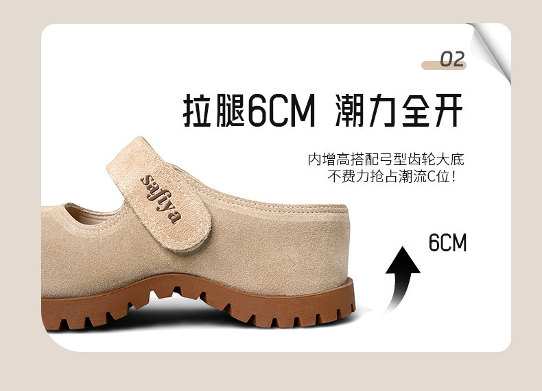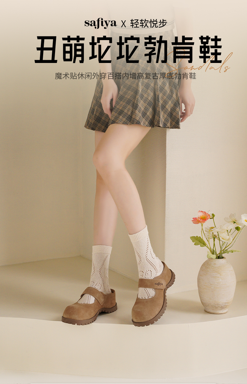 预售7天|Safiya/索菲娅2025魔术贴休闲外穿百搭内增高复古厚底勃肯鞋SFD3110401