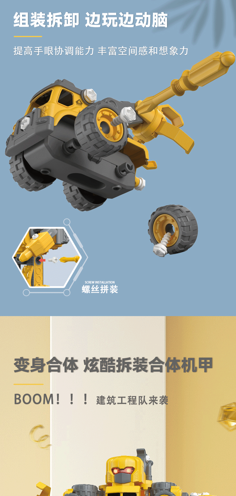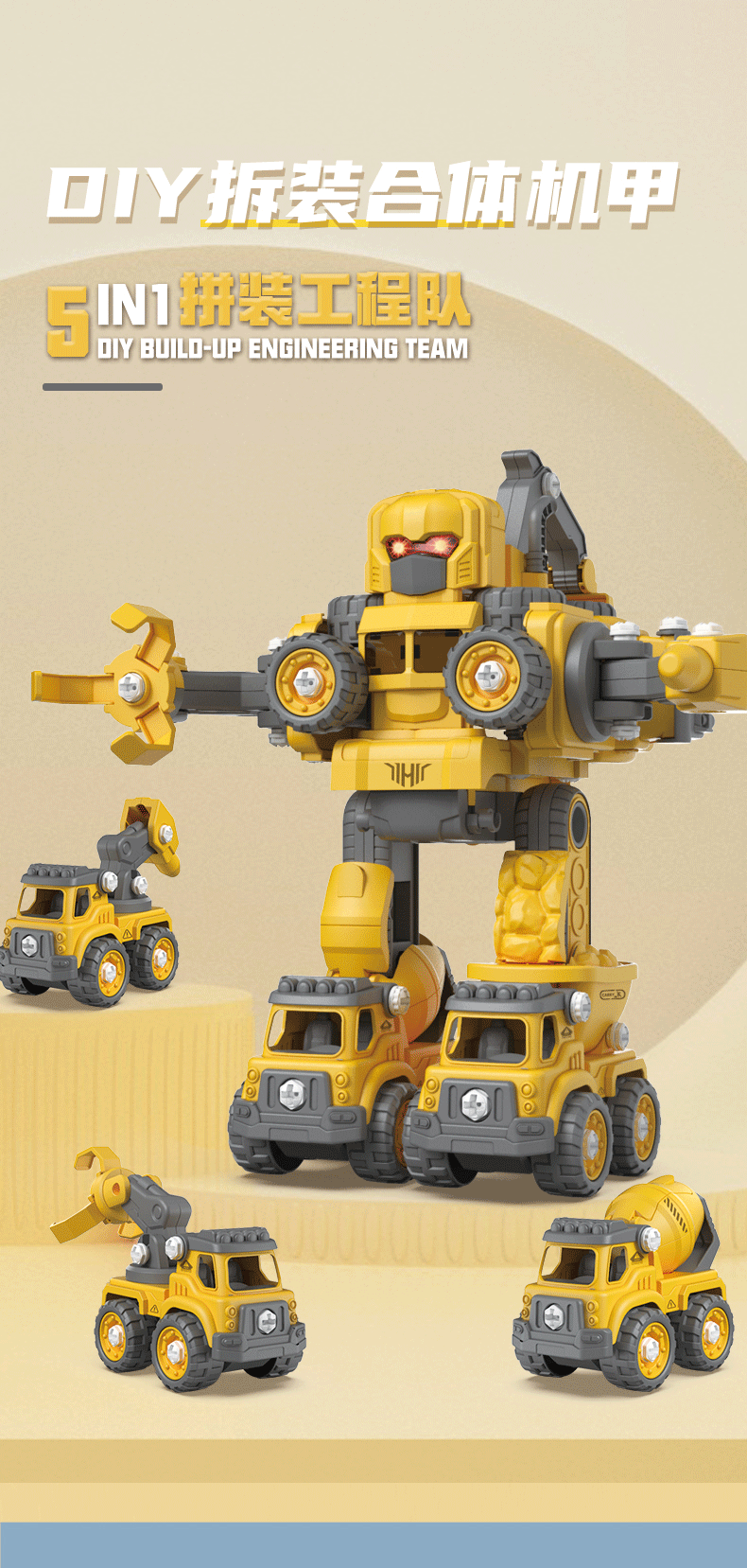 蛋宝乐工程车拼装机器人拆装合体机甲