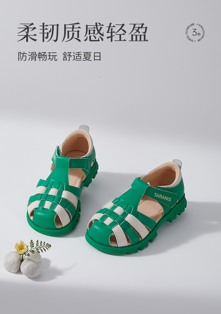 泰兰尼斯2025新款女童透气男童休闲包头凉鞋