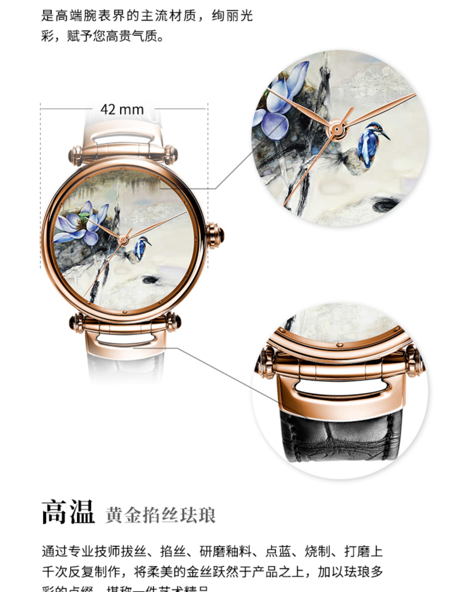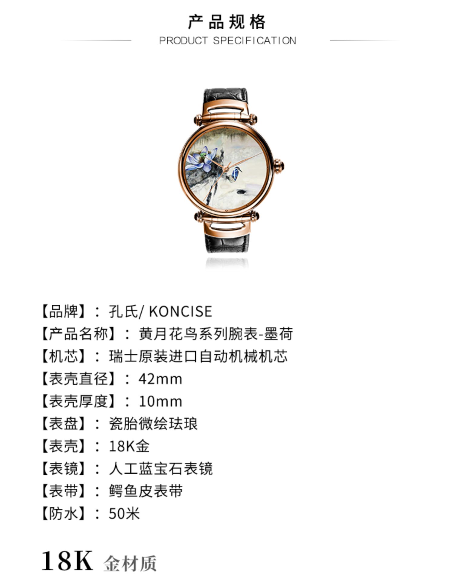 KONCISE孔氏珐琅 黄月花鸟 墨荷微绘珐琅 大表盘 真皮18K金腕表