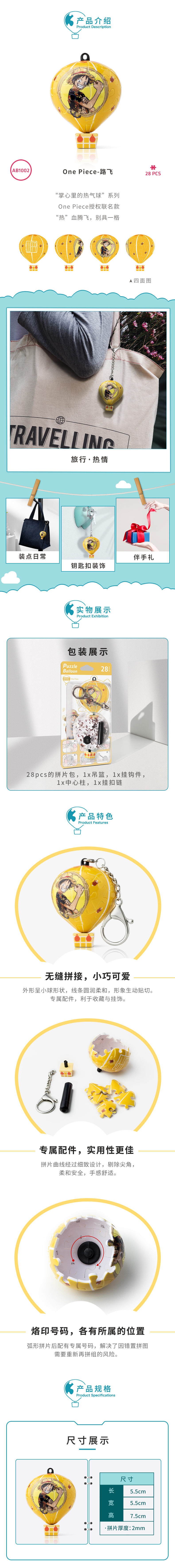 【折扣商品 不退不换】28片 热气球造型 钥匙扣拼图 AB1002 航海王OnePiece- 路飞
