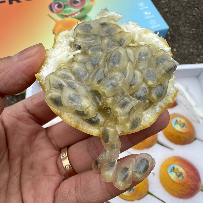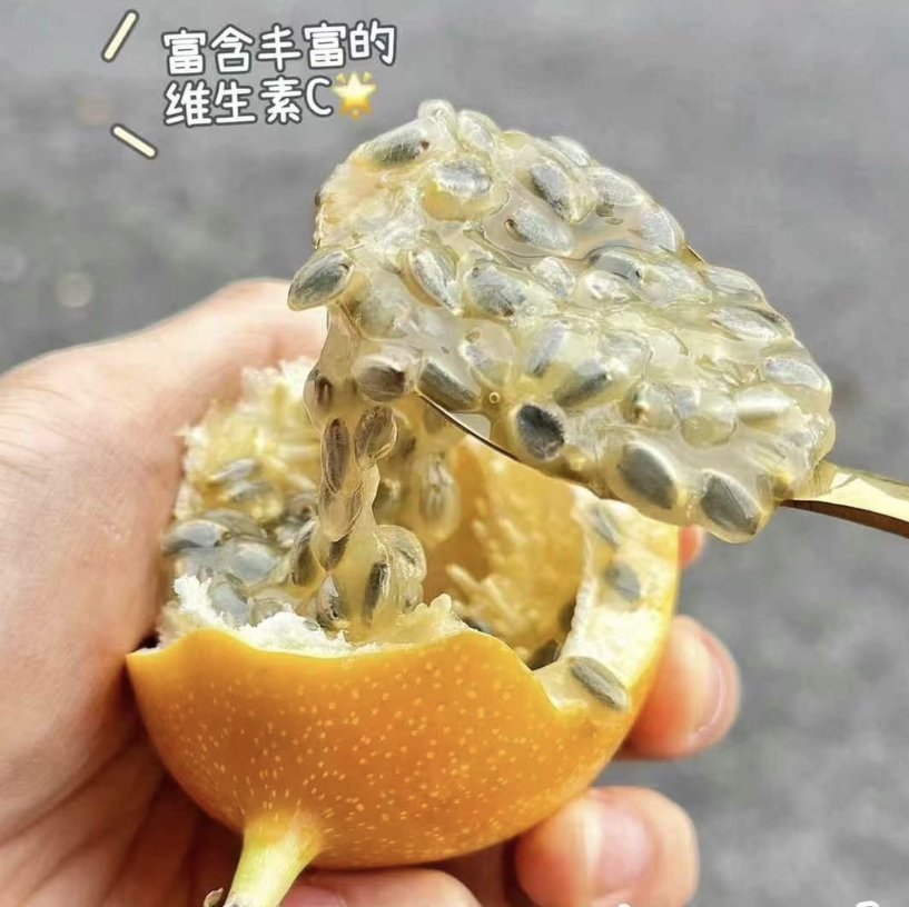 热情百分百的热情果🔥堪称“VC之王”的香料水果,果肉纯甜无酸,果香味浓多汁💦纯热带水果,外壳非常脆,用水轻轻一捏“啪”一声就开了,果肉QQ弹滑~其籽易咬碎,吃起来非常解压的快感‼️