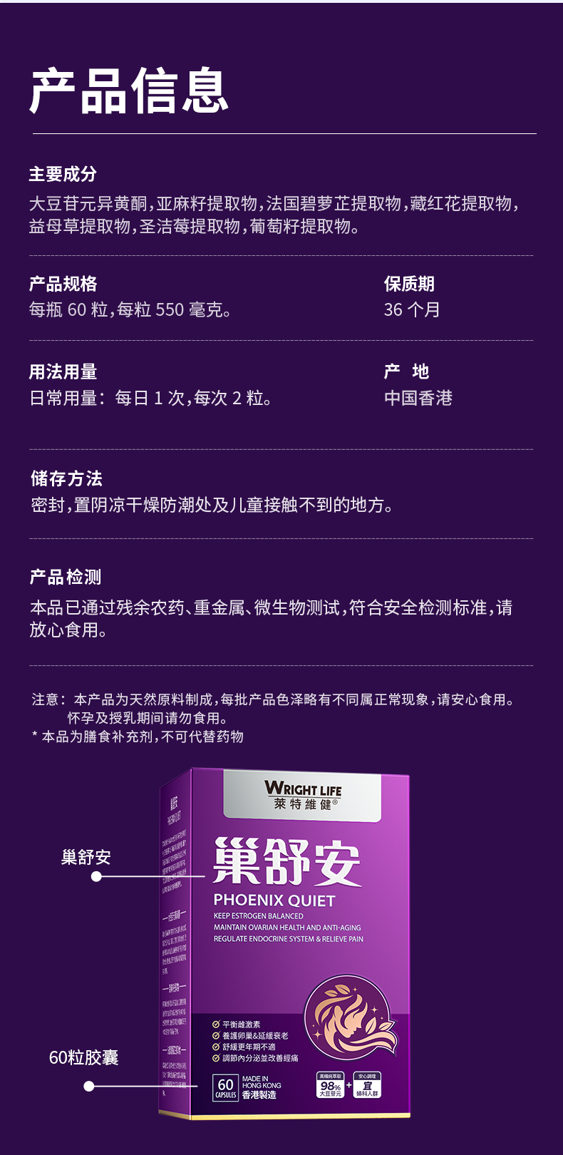 保税直发 WRIGHT LIFE 莱特维健 大豆异黄酮苷元胶囊 60粒/瓶 1瓶装/2瓶装/3瓶装