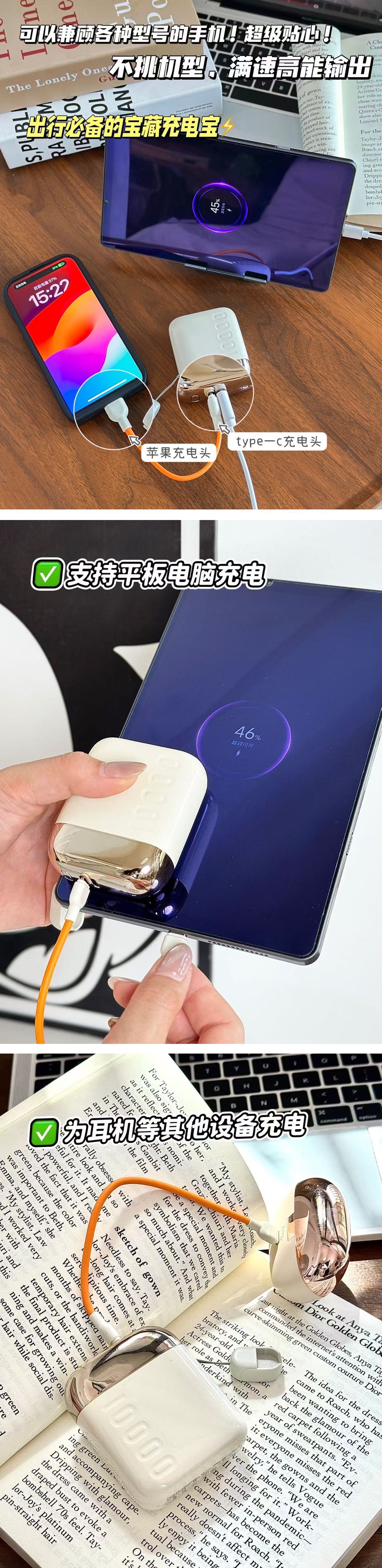 ✅10000mAh超大容量,优质电芯,快充不发烫