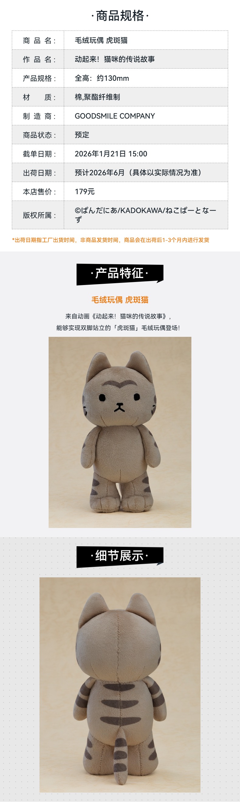 【GSC预售定金】毛绒玩偶 虎斑猫 动起来!猫咪的传说故事