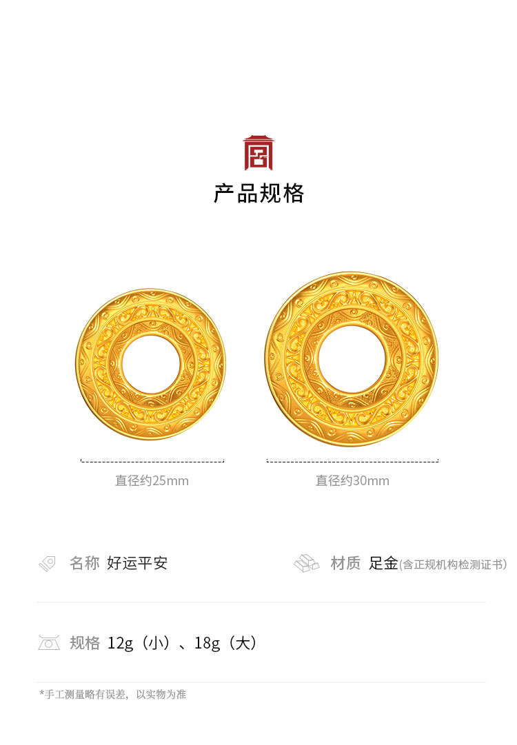 宫匠造办 十朝十美平安扣 战国·好运平安黄金吊坠