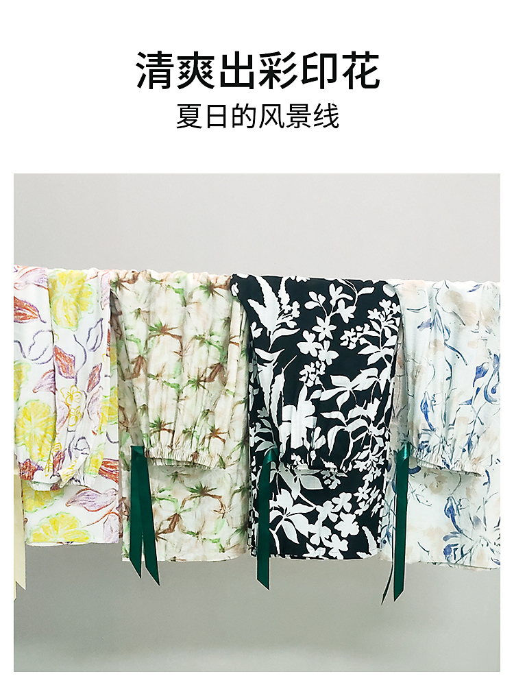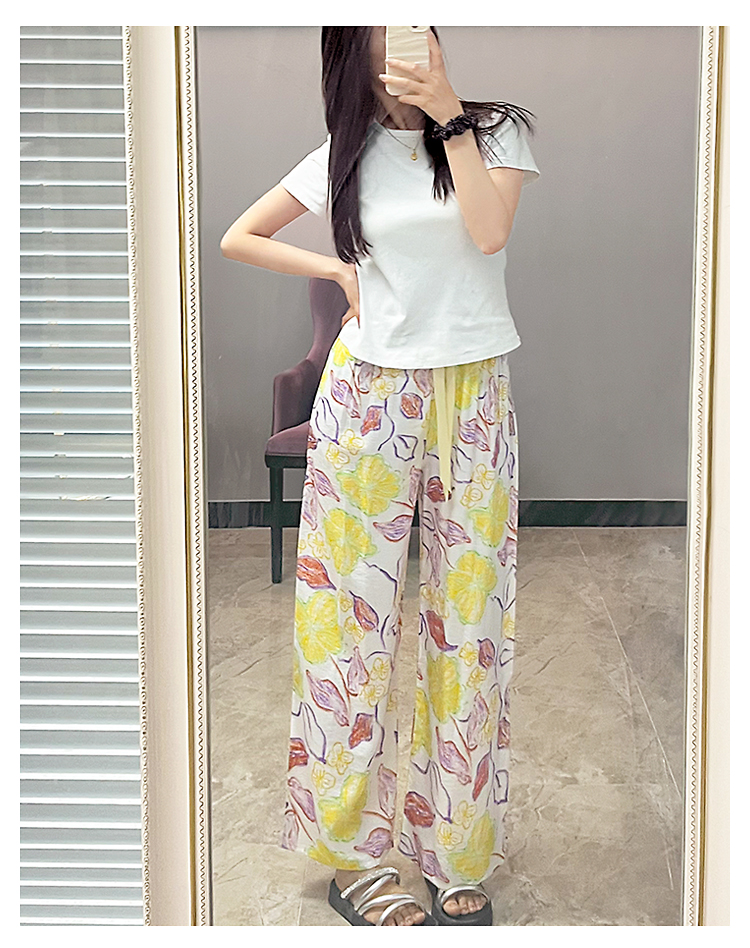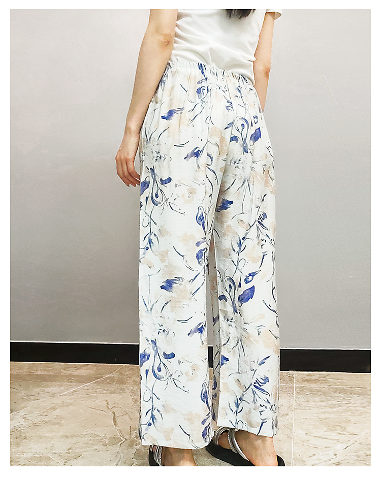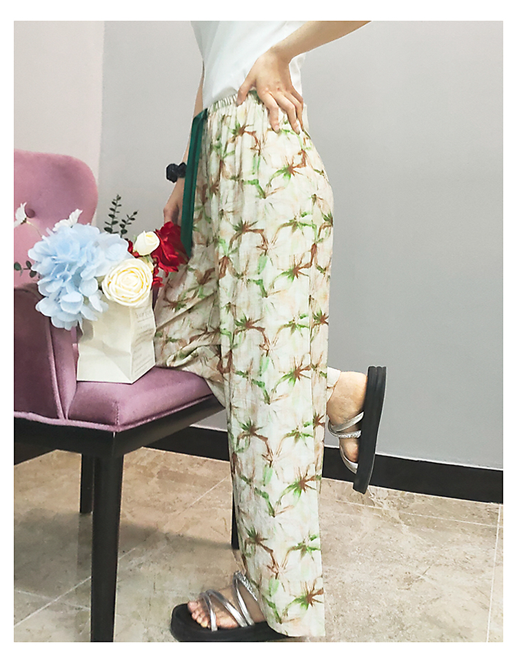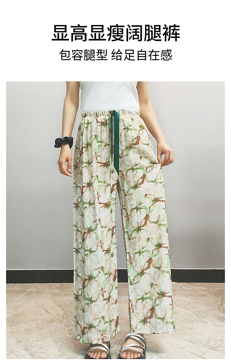 皇家丽美夏季透气两个高品质宽松垂感阔腿裤印花女裤百搭休闲XZ3701