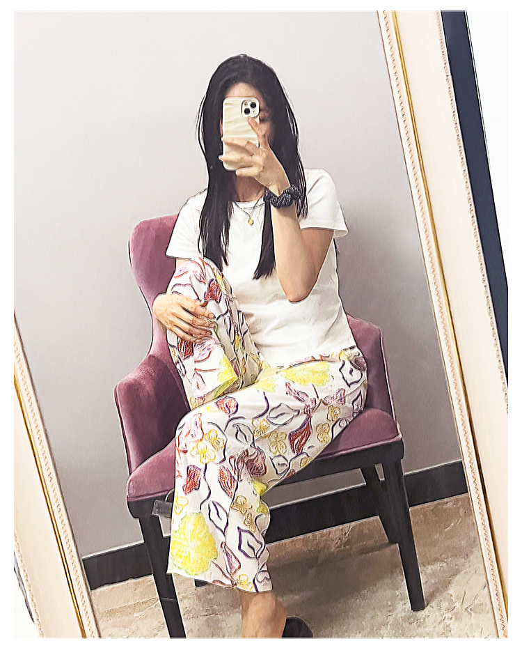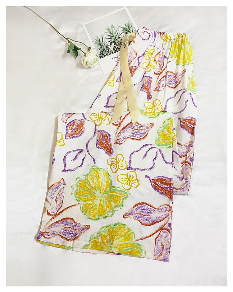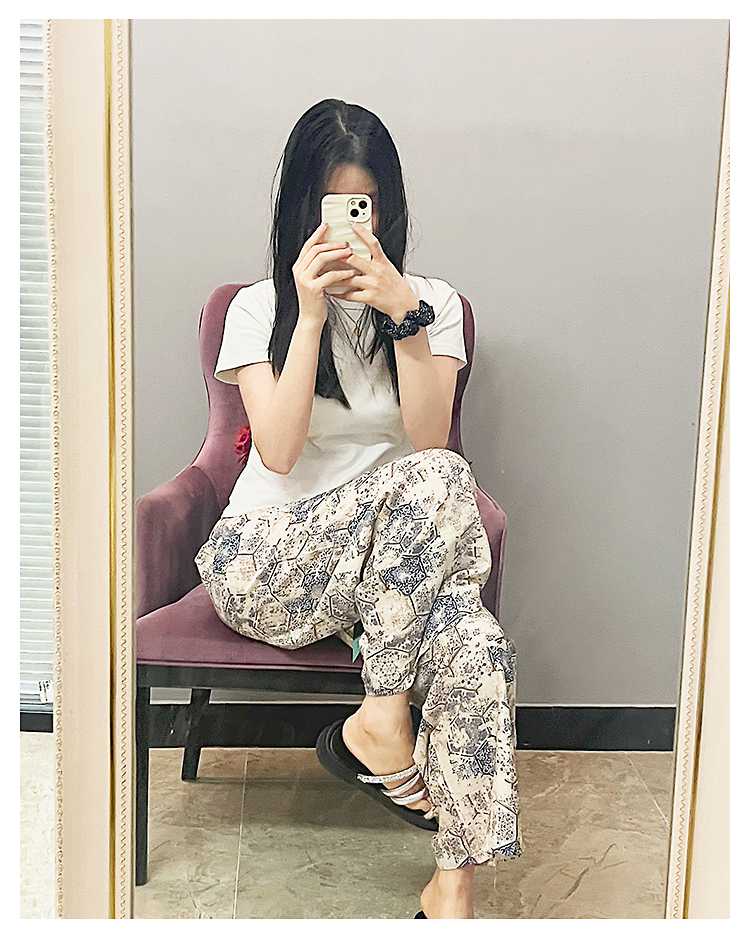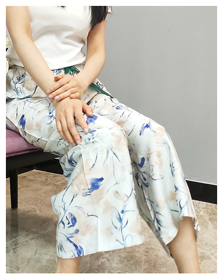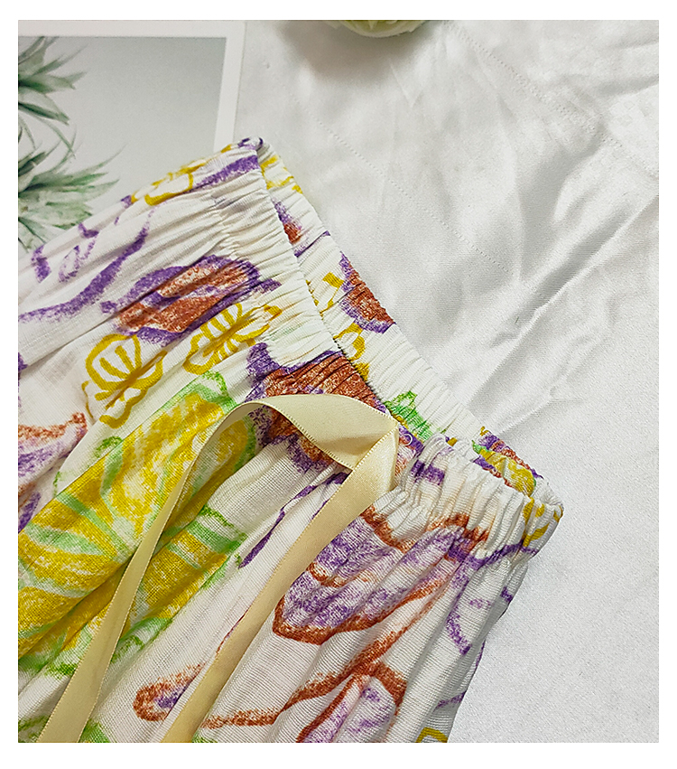 皇家丽美夏季透气两个高品质宽松垂感阔腿裤印花女裤百搭休闲XZ3701