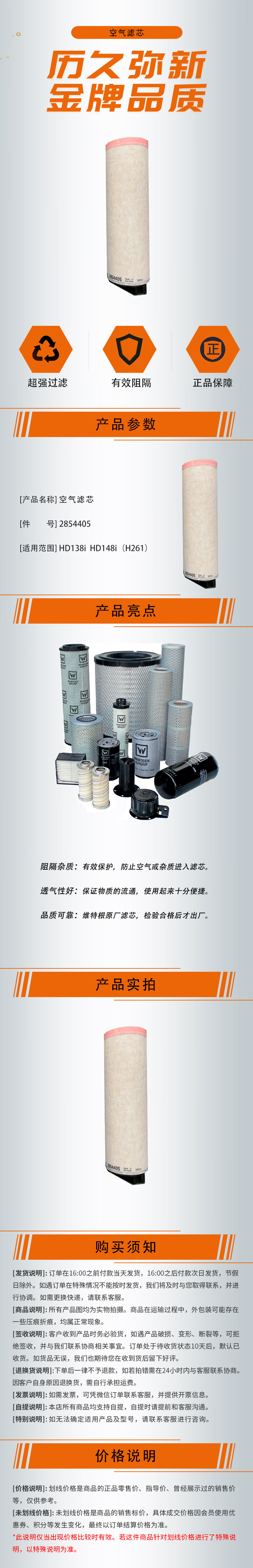 【空气滤芯 2854405】适用于HD138i HD148i(H261)