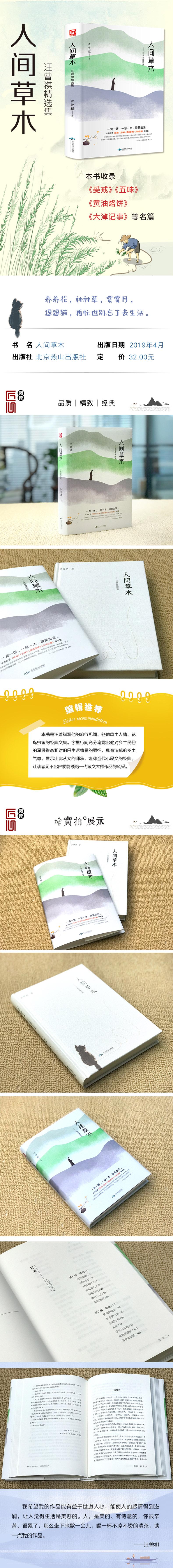 《人间草木》是汪曾祺先生的文集,他墨写出了草木山川、花鸟虫鱼的人味,写出了乡情民俗、凡人小事温润的乡土味;以一颗从容豁达的心写出了世间的美好与灵动。他的笔尖下总是有着一连串的惊喜:清晨薄雾里带着露珠的洁白的缅桂花,明亮、丰满而使人丰满的昆明的雨,饱涨着花骨朵的木香,自得其乐的栀子花,巷子里卖杨梅的苗族女子柔柔的声音,联大那些令人难以忘却的师友,抑或是没有大喜大忧、没有烦恼、无欲望亦无追求、天然恬淡、抱膝闲看“活庄子”般的闹市闲民。汪曾祺先生一生都对生活投入真情,那水洗般的文字有种洗涤红尘世俗的力量,赋予了作品纯真的生命力。