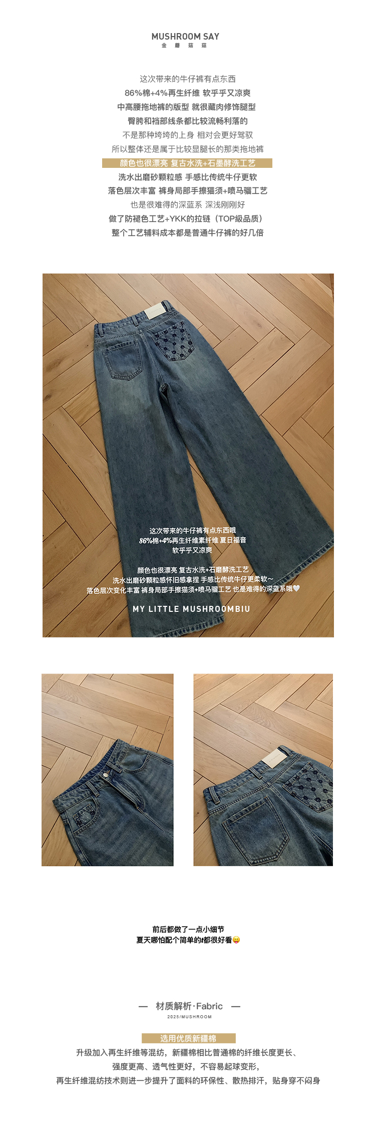 金蘑菇菇 舒适至上 本期Biiiii入香香牛仔 / 4%再生纤维牛仔裤