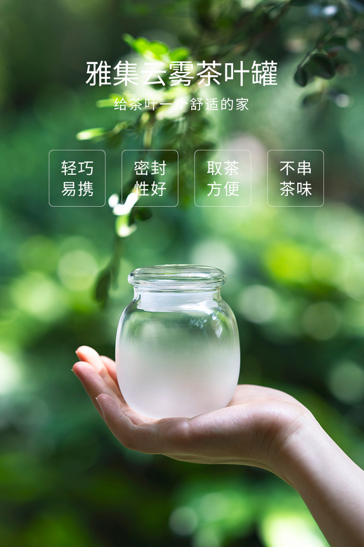 雅集茶具 玻璃云雾茶叶罐储物罐 密封罐装糖果罐子保鲜罐