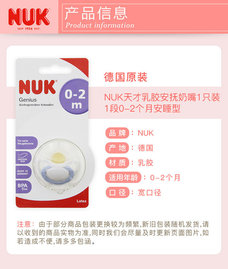 【保税仓】NUK 天才系列乳胶安抚奶嘴 宽口径 0-2个月