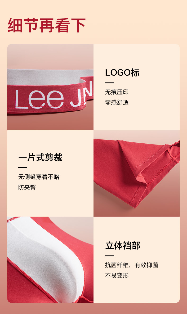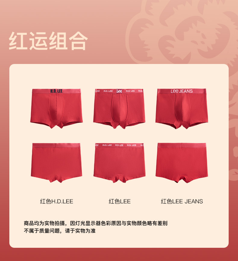 【一片式防夹臀 消除紧绷感】Lee7A抑菌棉男士内裤礼盒本命年礼盒 舒适包裹 大有空间