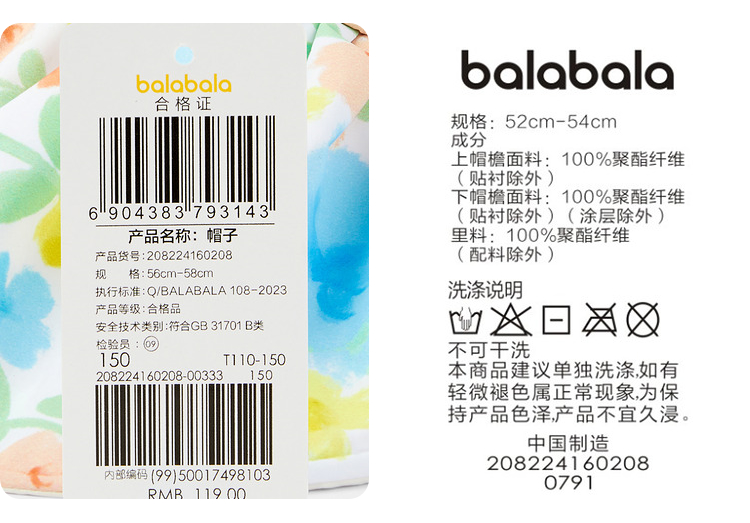 巴拉巴拉儿童防晒帽女童遮阳帽新款夏季薄款防紫外线便携时尚