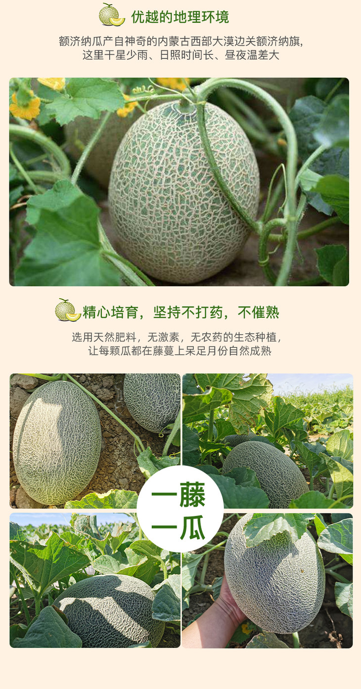 内蒙古额济纳蜜瓜—胡杨蜜瓜,不一样的甜 2枚 8斤左右