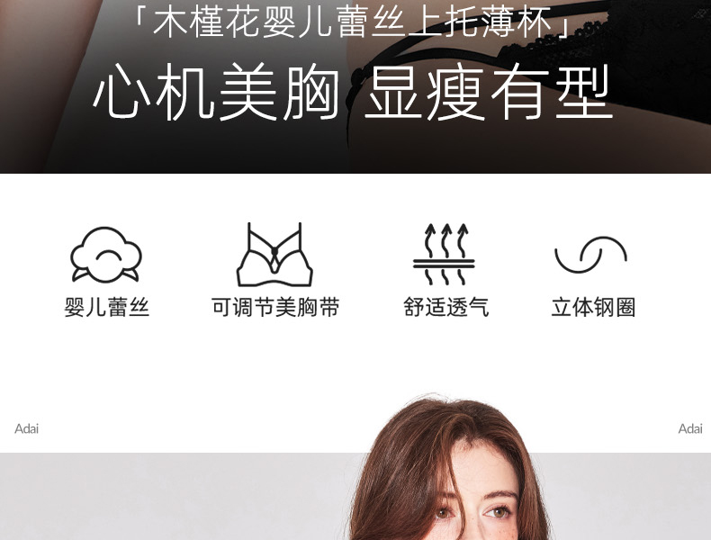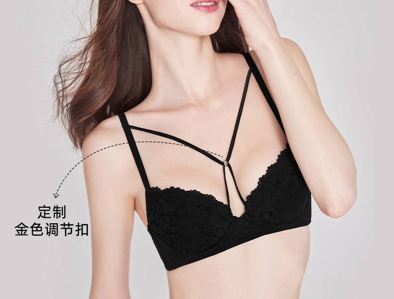 好奇蜜斯大胸显小内衣女纯欲蕾丝薄25春夏文胸罩套装防下垂软钢圈 阿黛