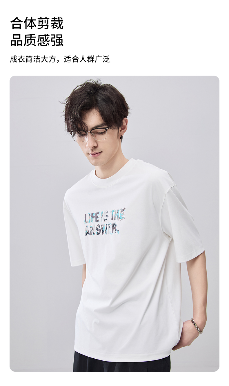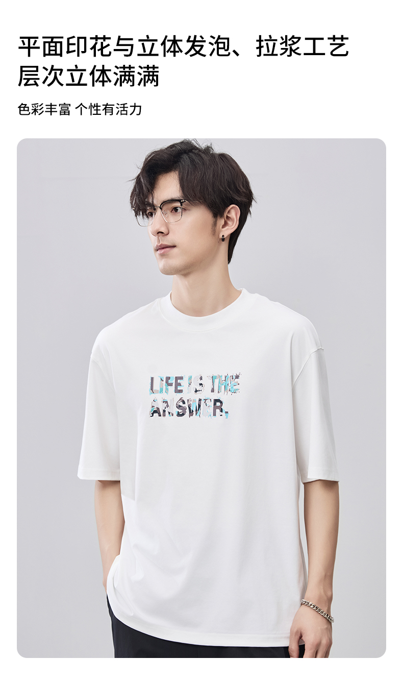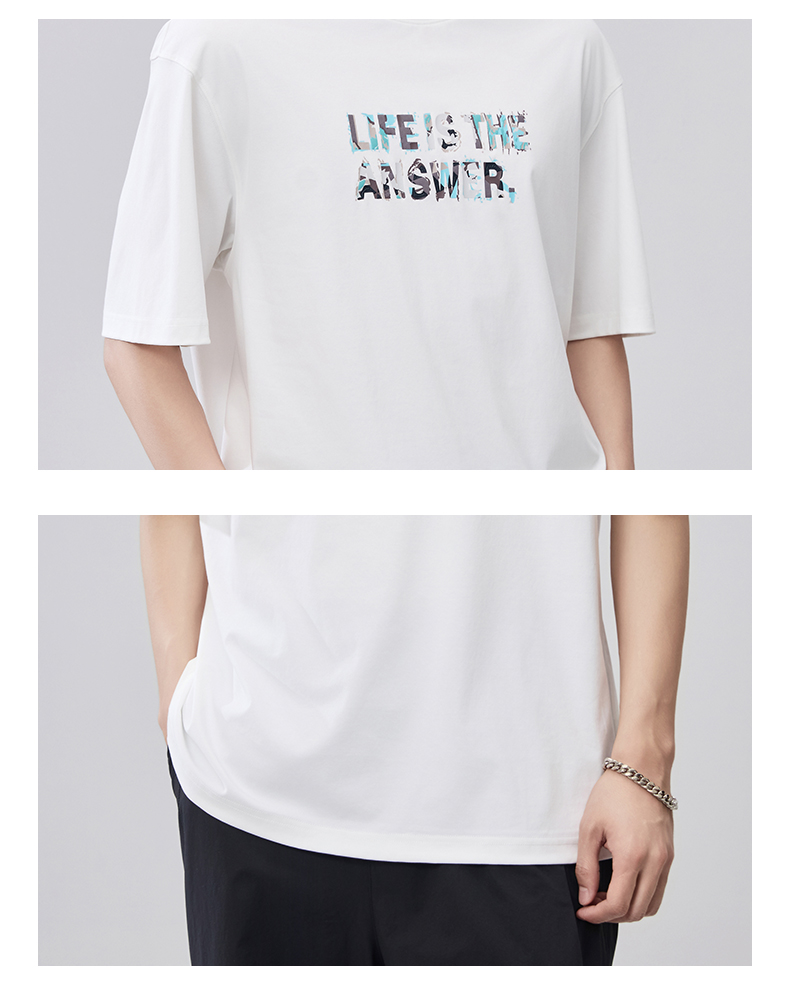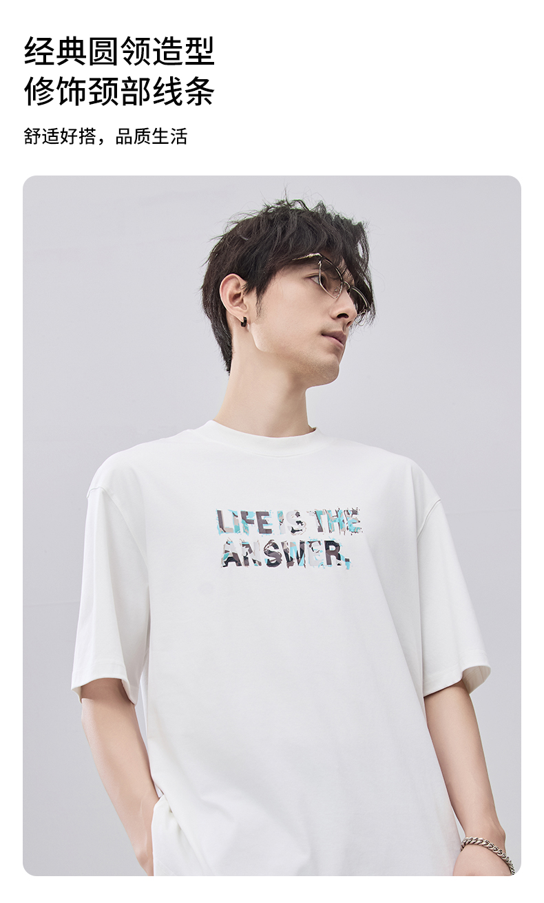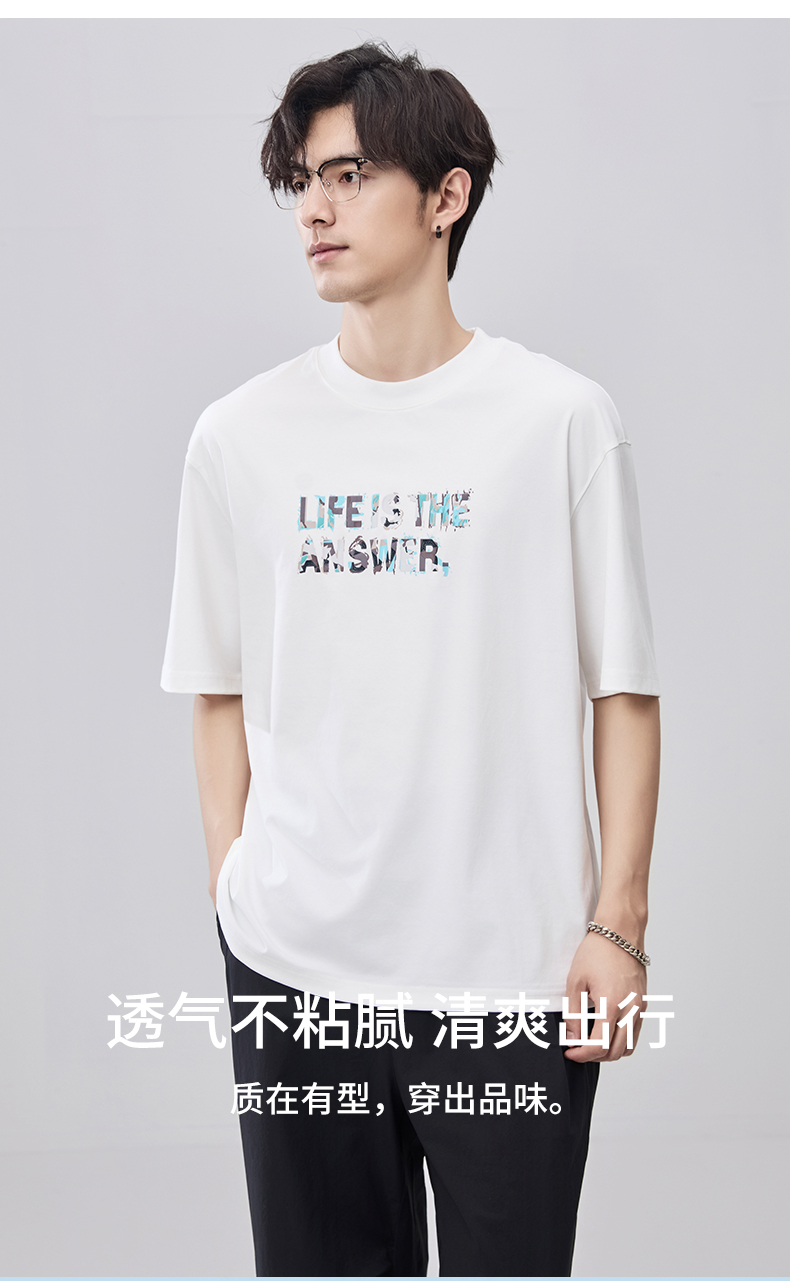 贝纳川夏季100支高密字母印花短袖T恤ECF214015