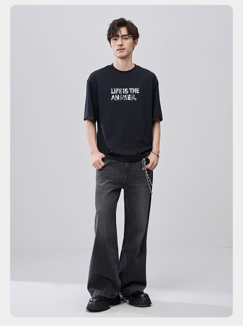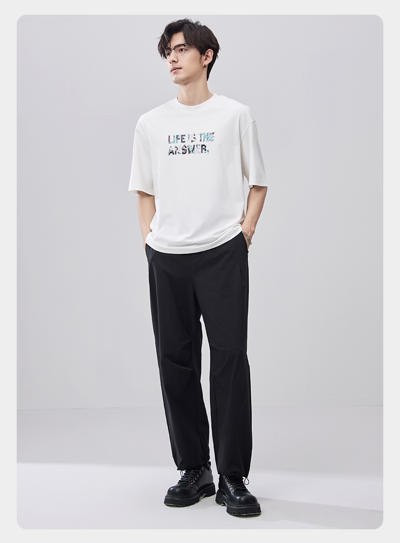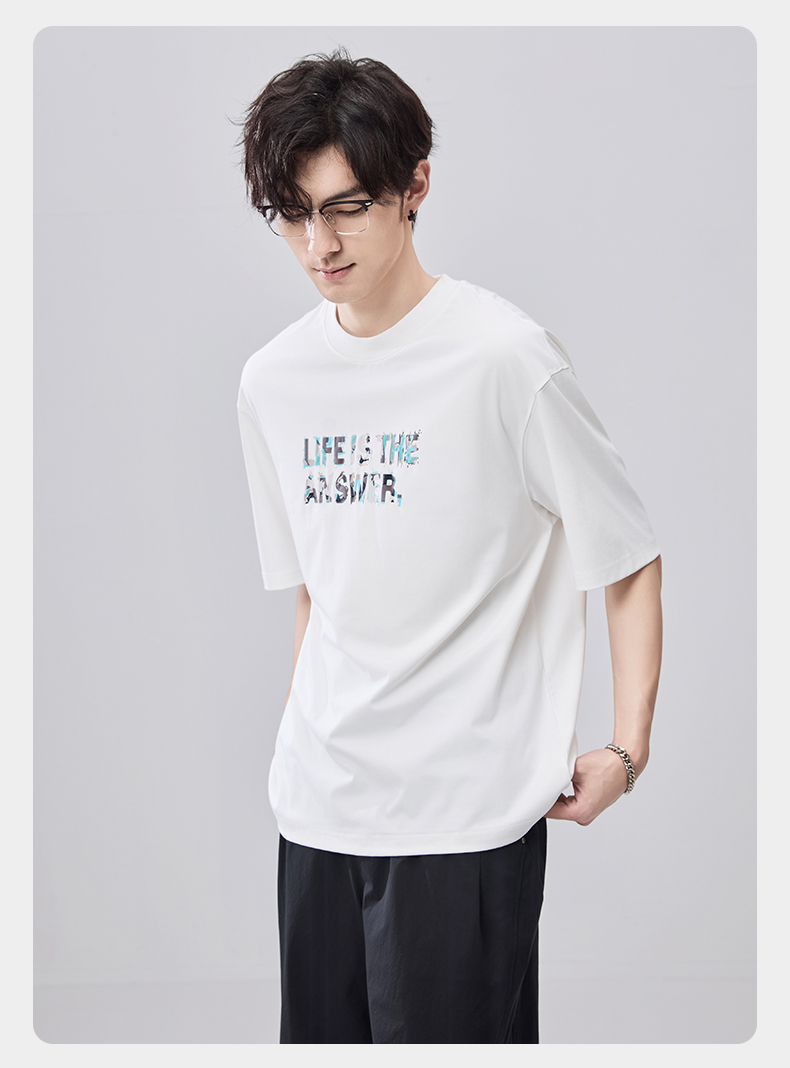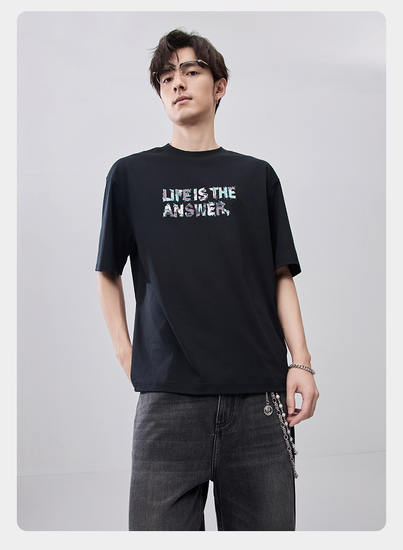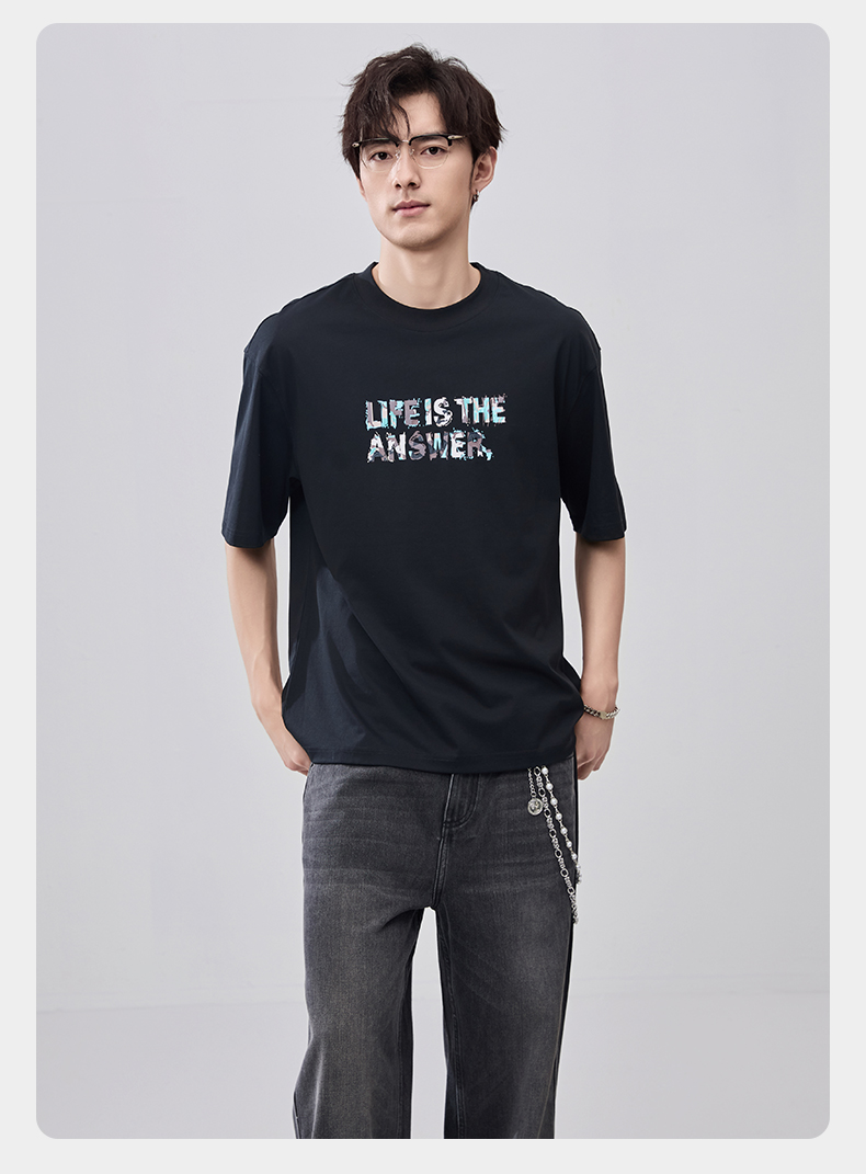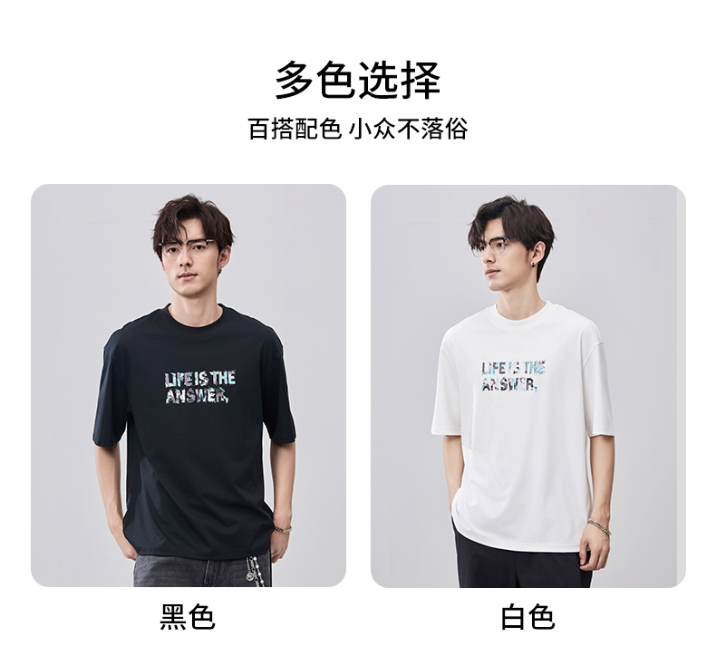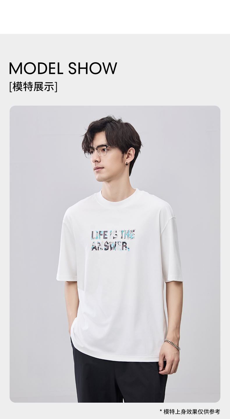 贝纳川夏季100支高密字母印花短袖T恤ECF214015