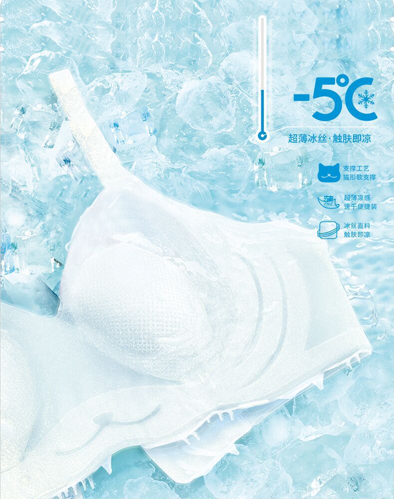 【99元2件】速干冰丝凉感兔耳朵无痕内衣 轻薄裸感软支撑无钢圈文胸