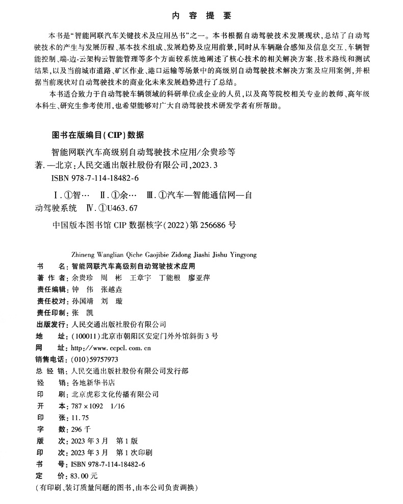 书名:智能网联汽车高级别自动驾驶技术应用