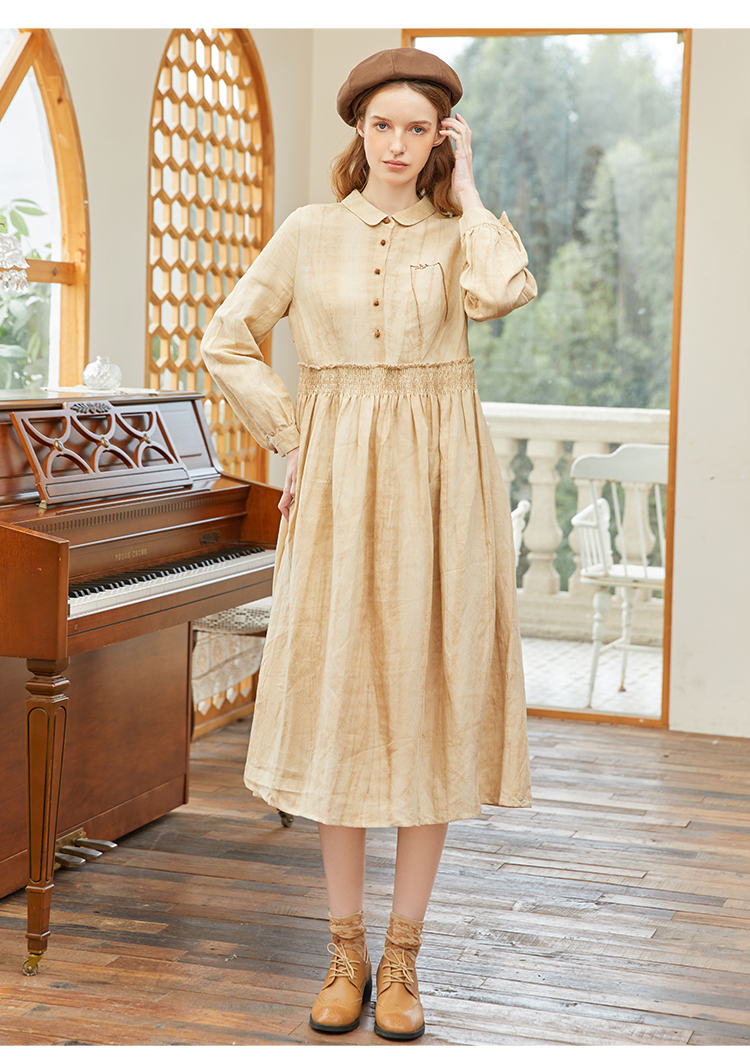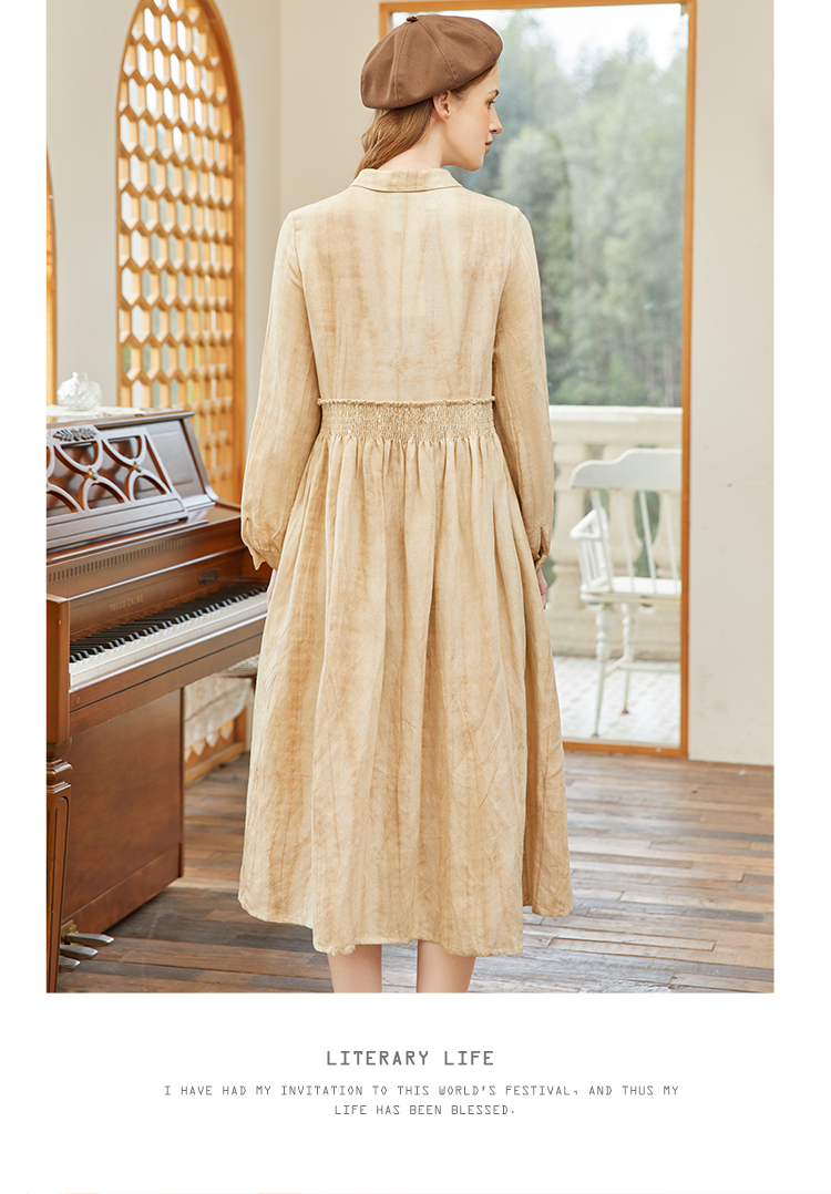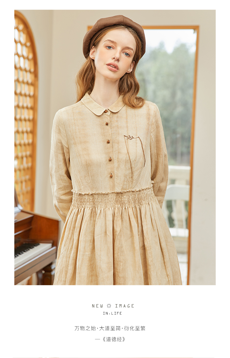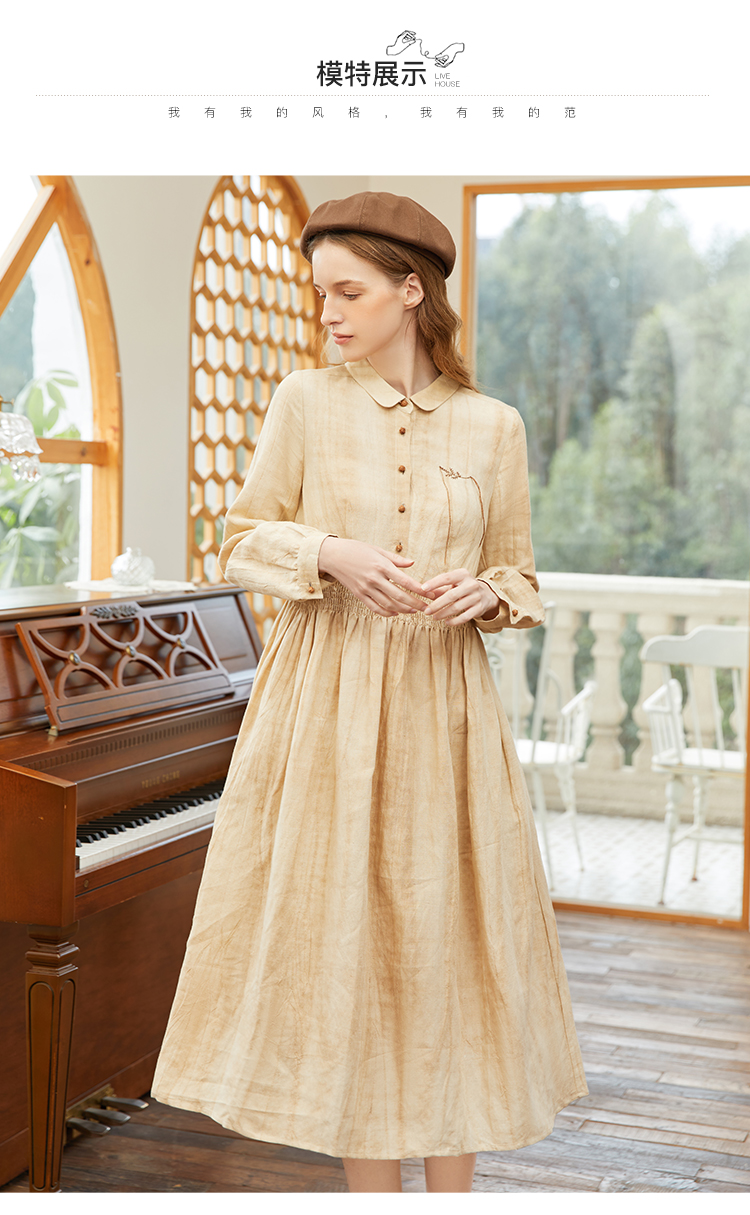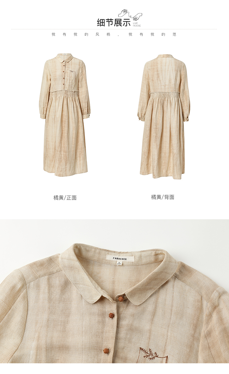 famecoco范可儿春季苎麻松紧腰长裙水墨温柔连衣裙高级FAB1FA011