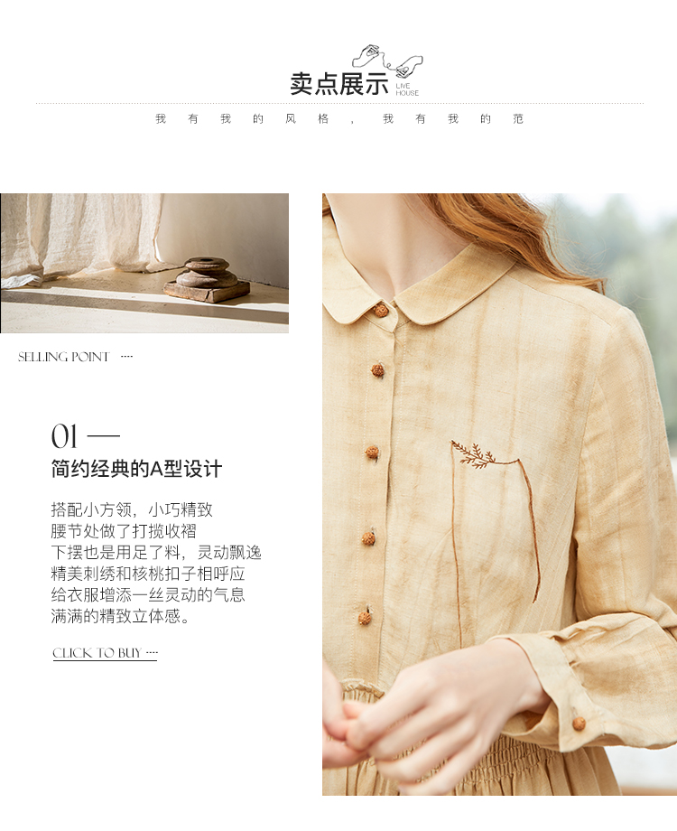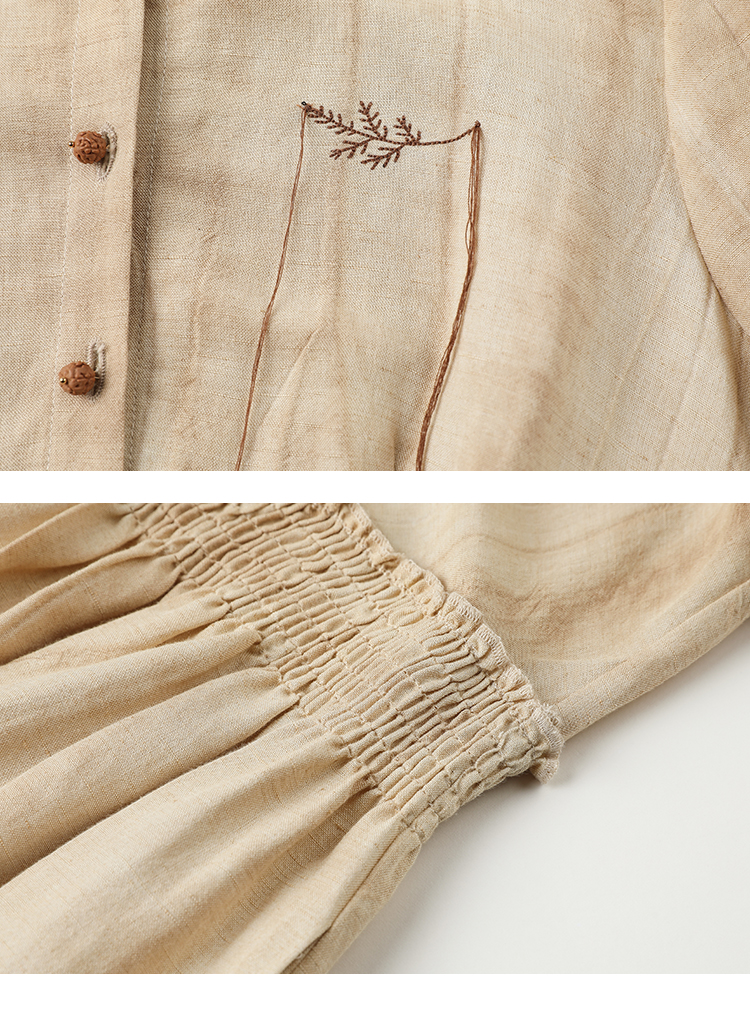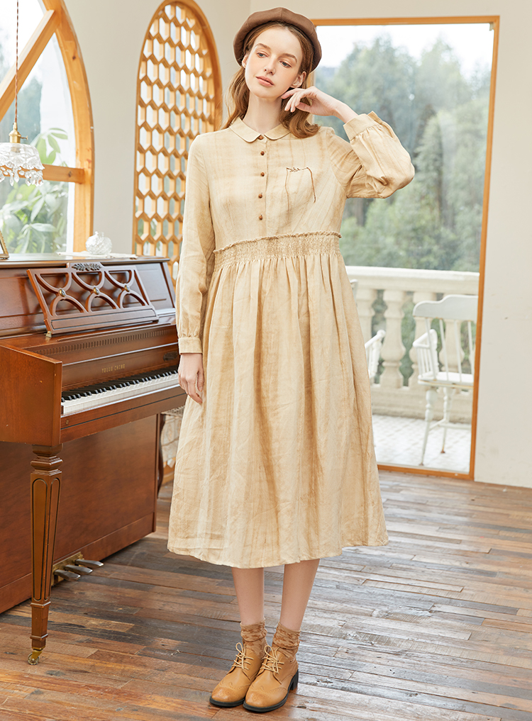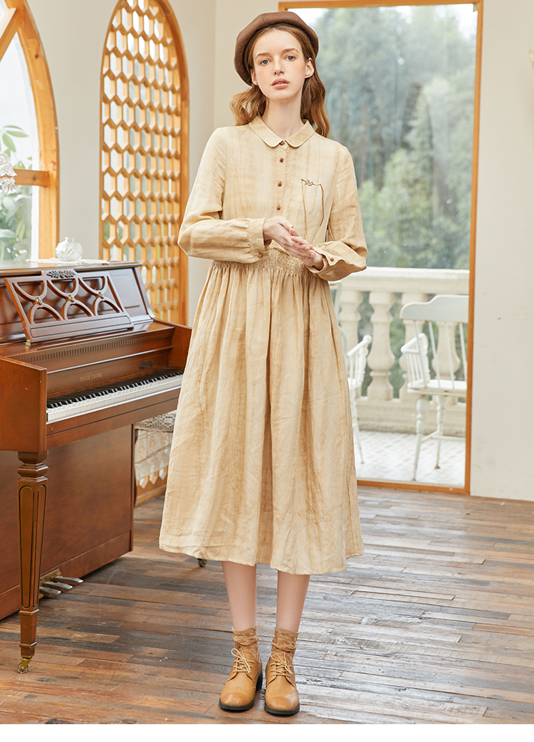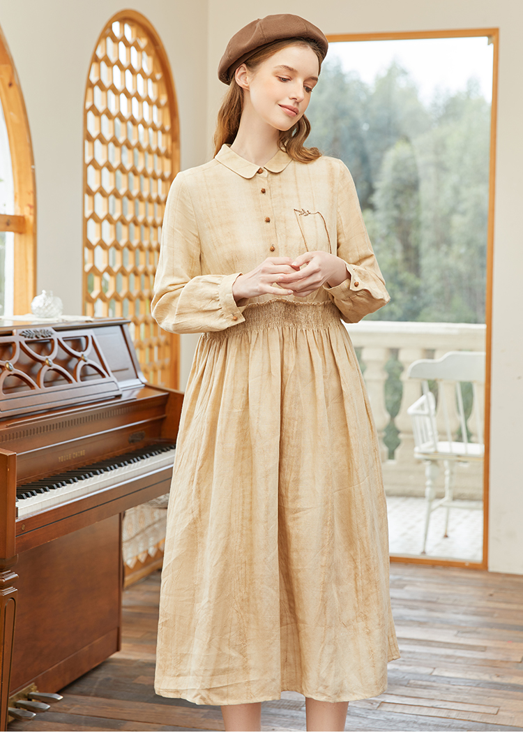 famecoco范可儿春季苎麻松紧腰长裙水墨温柔连衣裙高级FAB1FA011