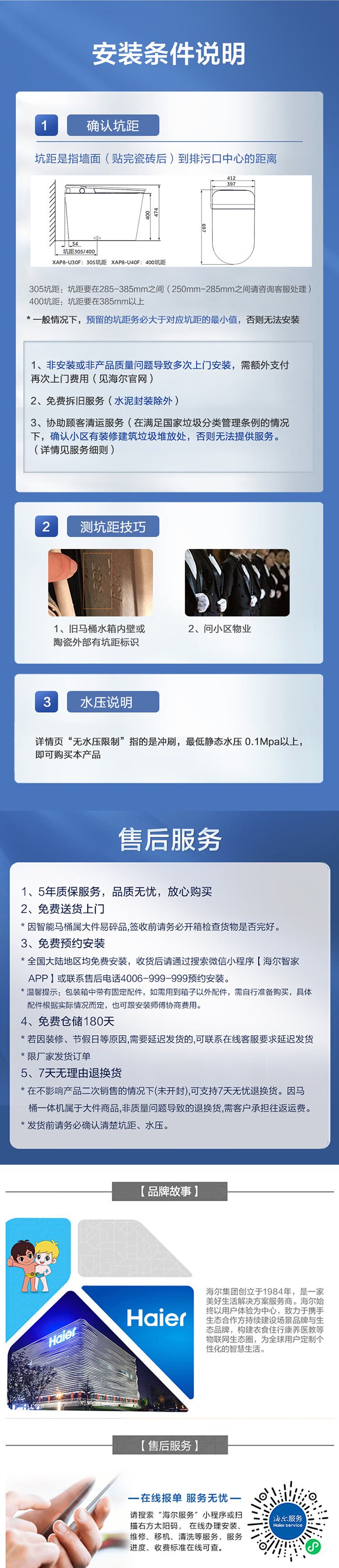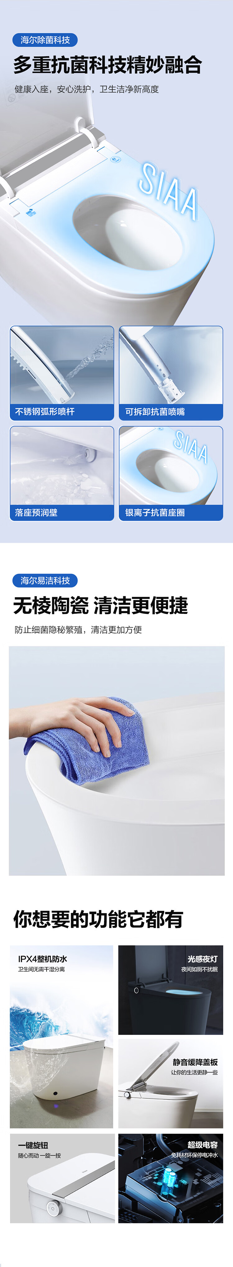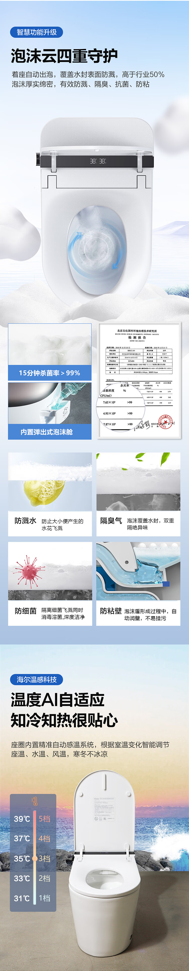 海尔(Haier)智能马桶一体机超旋式冲水零水压泡沫盾家用卧室卫生间轻音坐便器 【海尔售后免费安装】XAP8 305坑距( 285-385以内选择)/400坑距( 385以上选择))