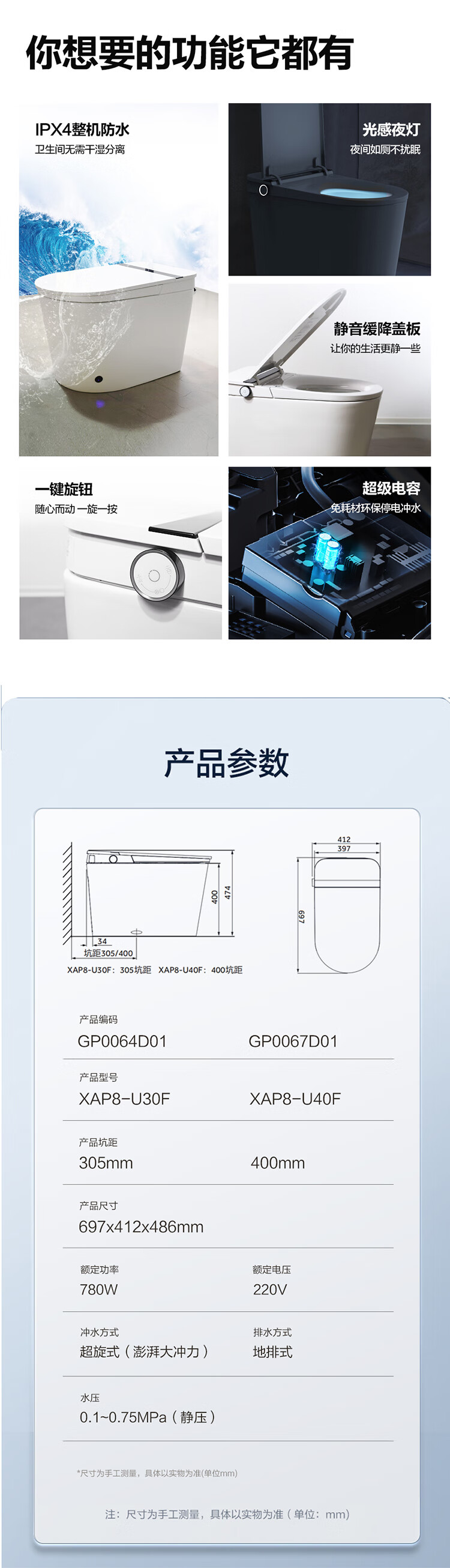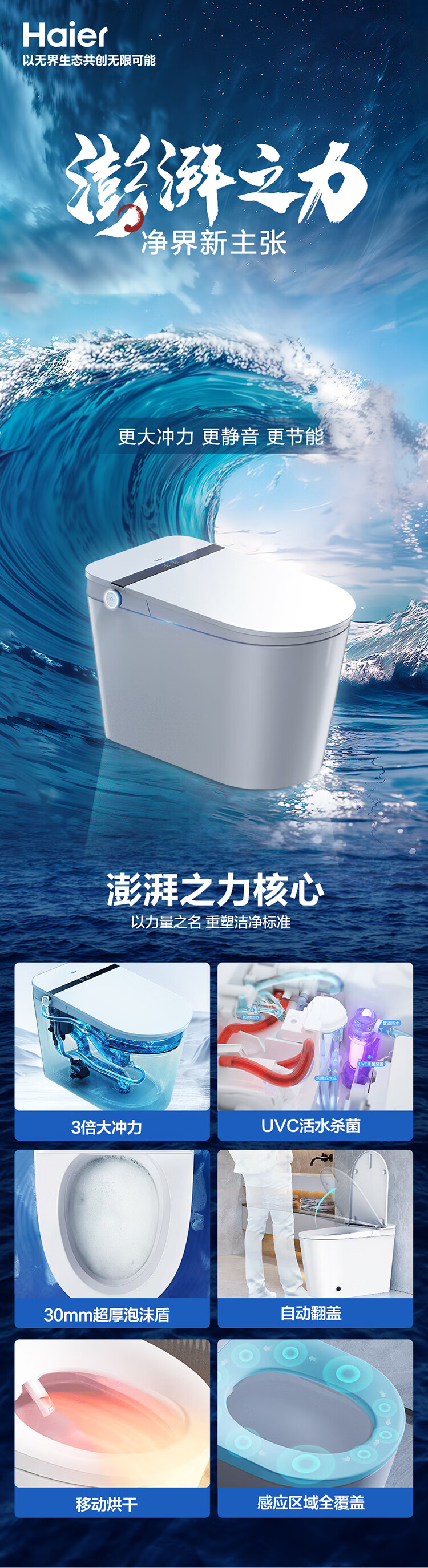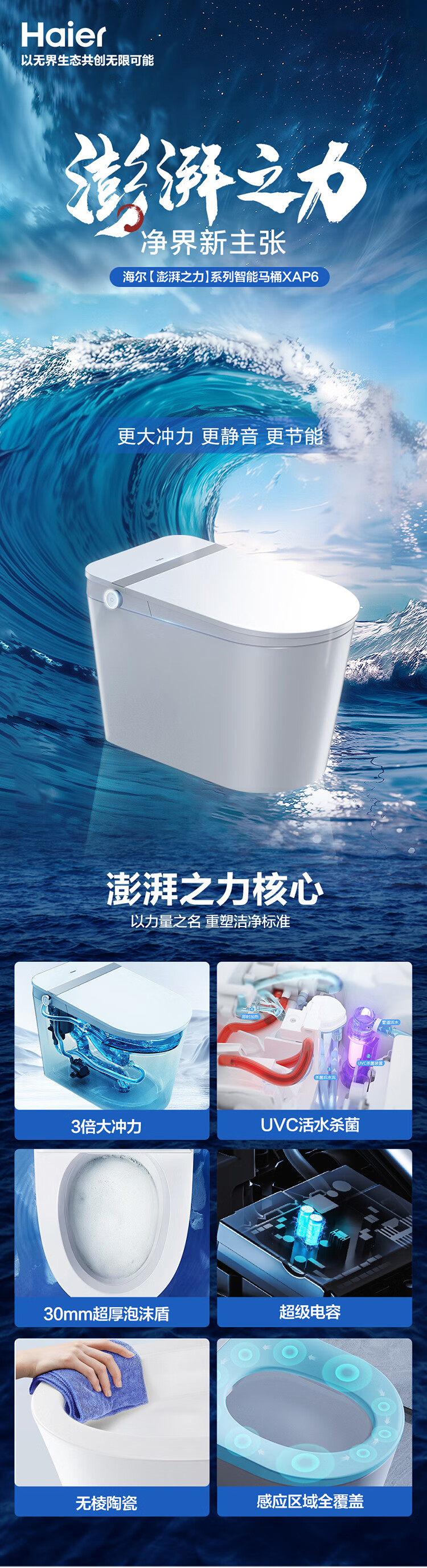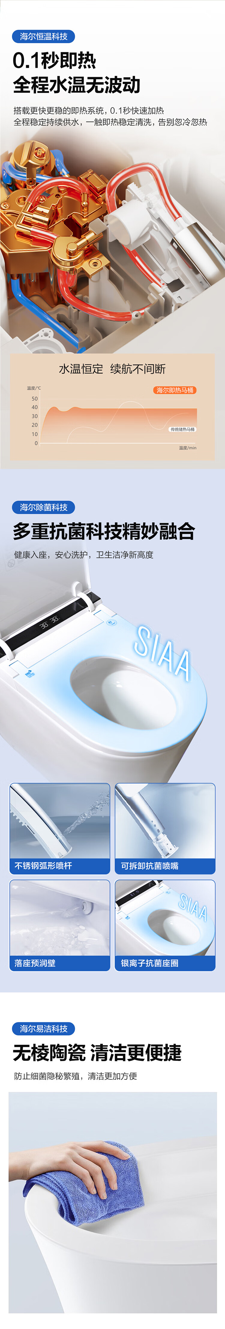 海尔(Haier)智能马桶一体机超旋式冲水零水压泡沫盾家用卧室卫生间轻音坐便器 【海尔售后免费安装】XAP8 305坑距( 285-385以内选择)/400坑距( 385以上选择))