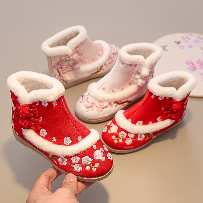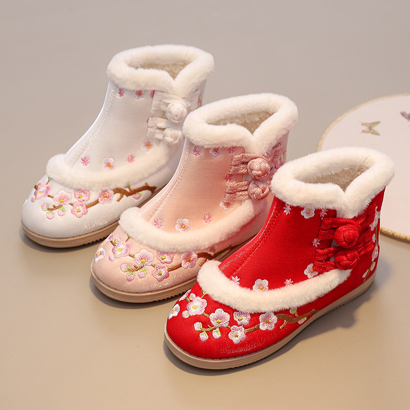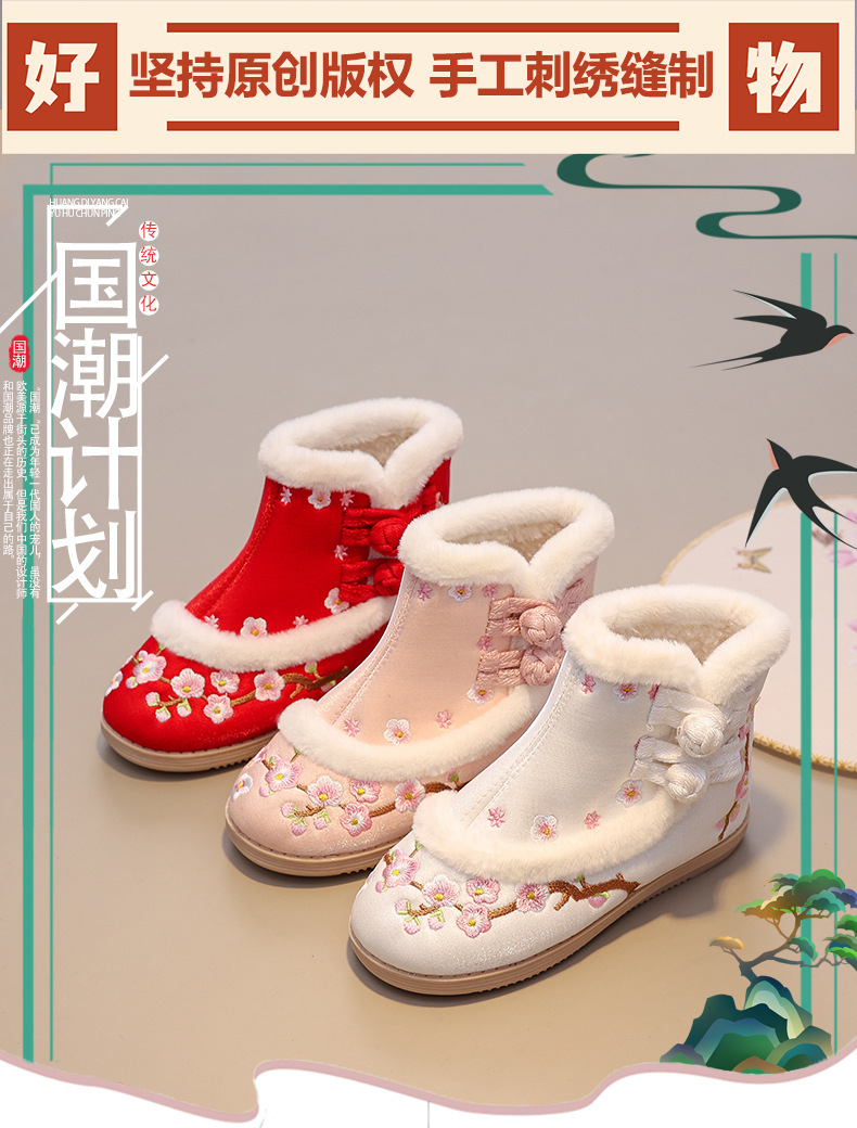 苏城纪【梅花】女童汉服鞋古风汉服靴子冬季加绒棉鞋: “梅花靴” 直接把新年氛围感焊在脚上!🌸红 / 粉 / 白三色美到犯规!