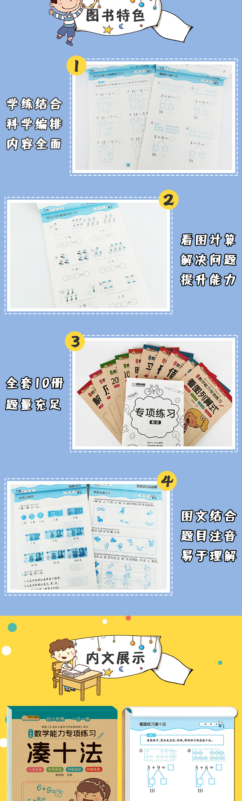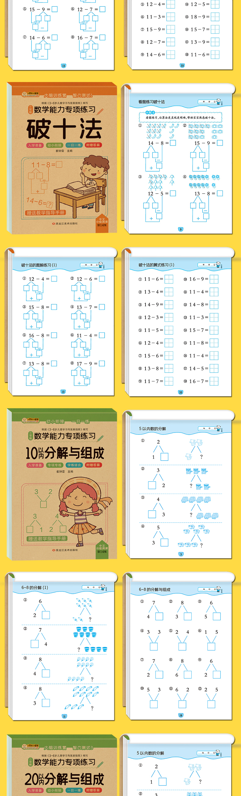 10本 凑十法借十法全套破十法幼小衔接数学练习题幼儿奥数启蒙思维训练10以内加减法练习册20 分解与组成幼儿园大班学前班升一年级