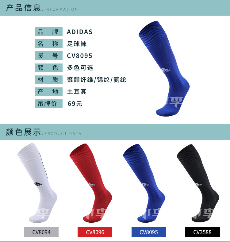 小李子正品Adidas/阿迪达斯 男子足球训练比赛针织长筒袜男CV8094