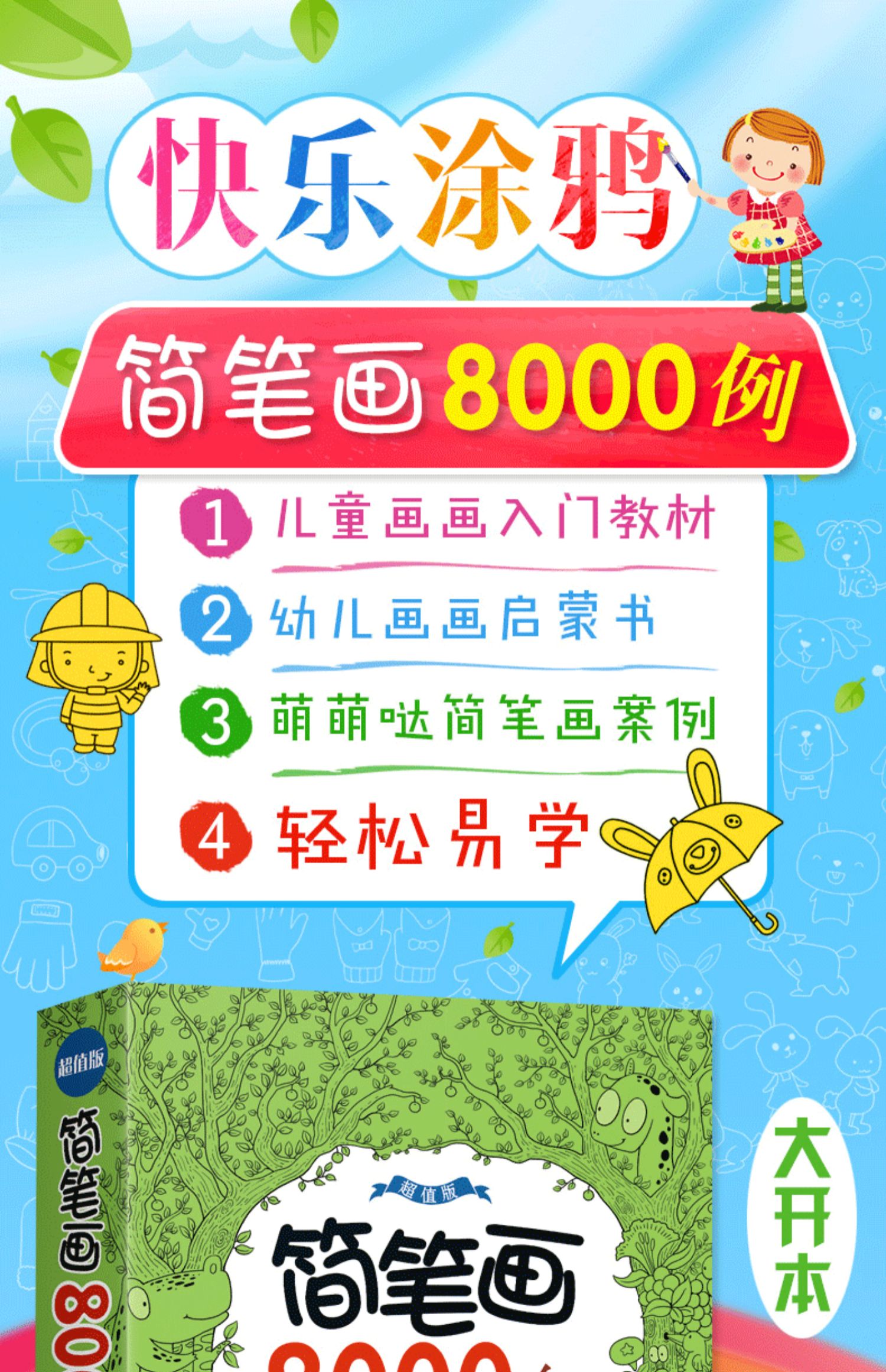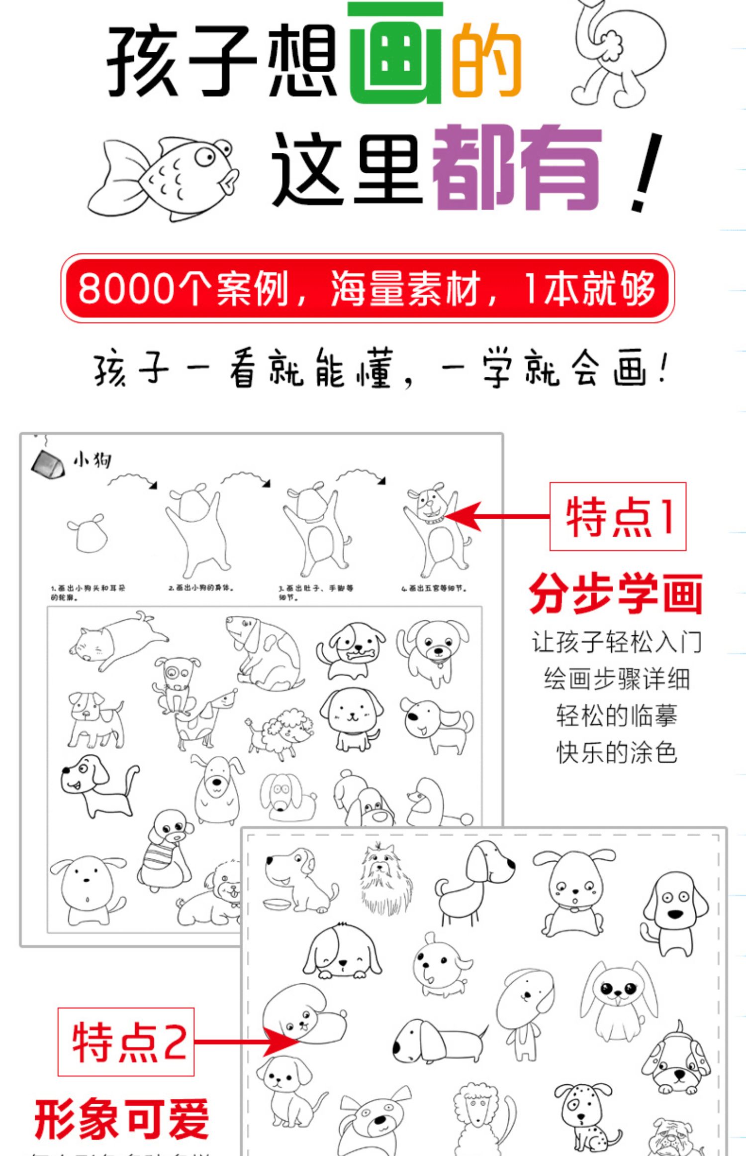 简笔画8000例超值版儿童手绘本大全小学生绘画涂鸦填色本幼儿园宝宝学画画涂色书籍入门教材5000例升级幼师教程成人素描自学初学者